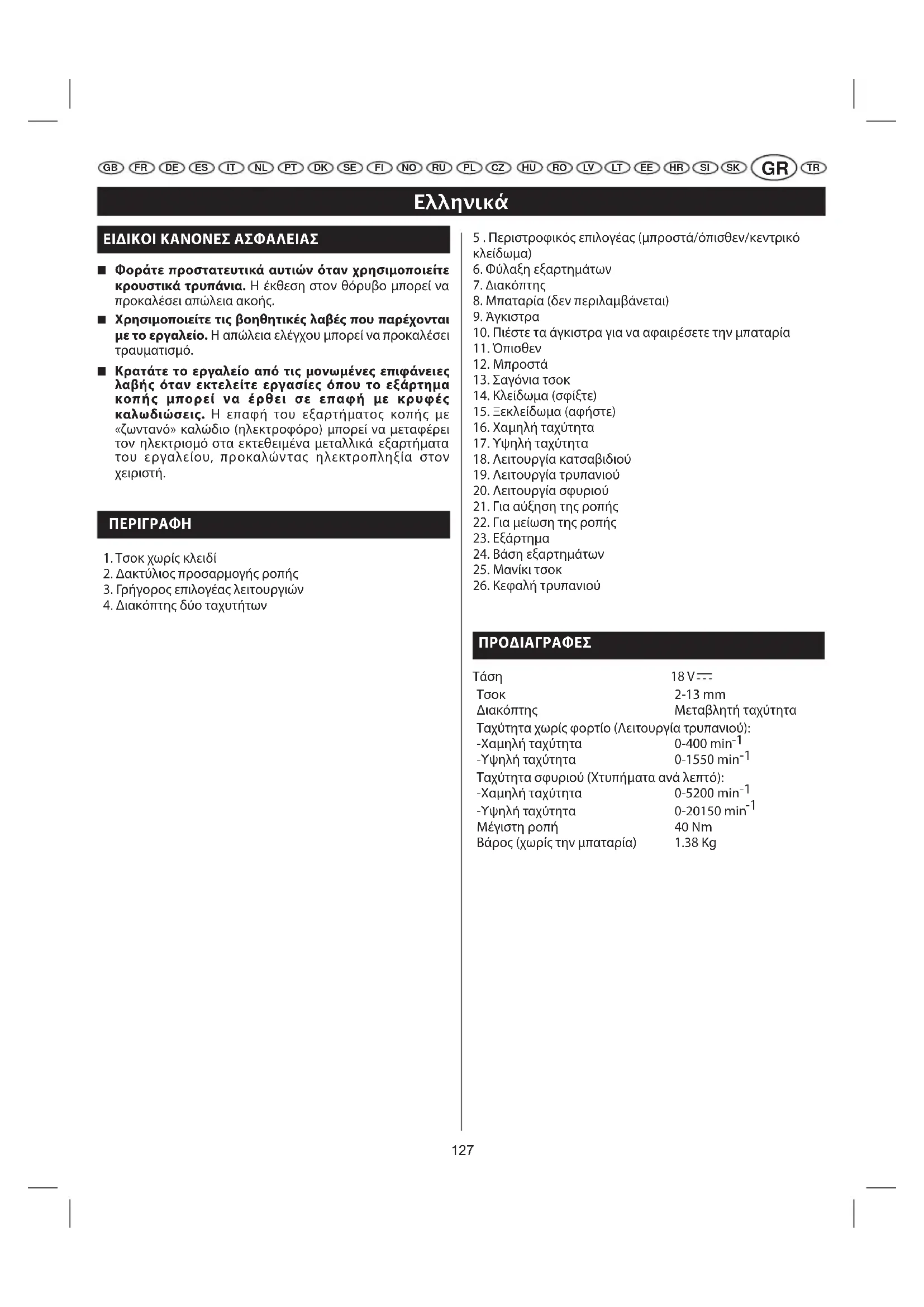 COMPACT ΣΦΥΡΟ-ΔΡΕΠΑΝΟΚΑΤΣΑΒΙΔΟ 18 VOLT ΟΔΗΓΙΕΣ ΧΡΗΣΗΣ 127