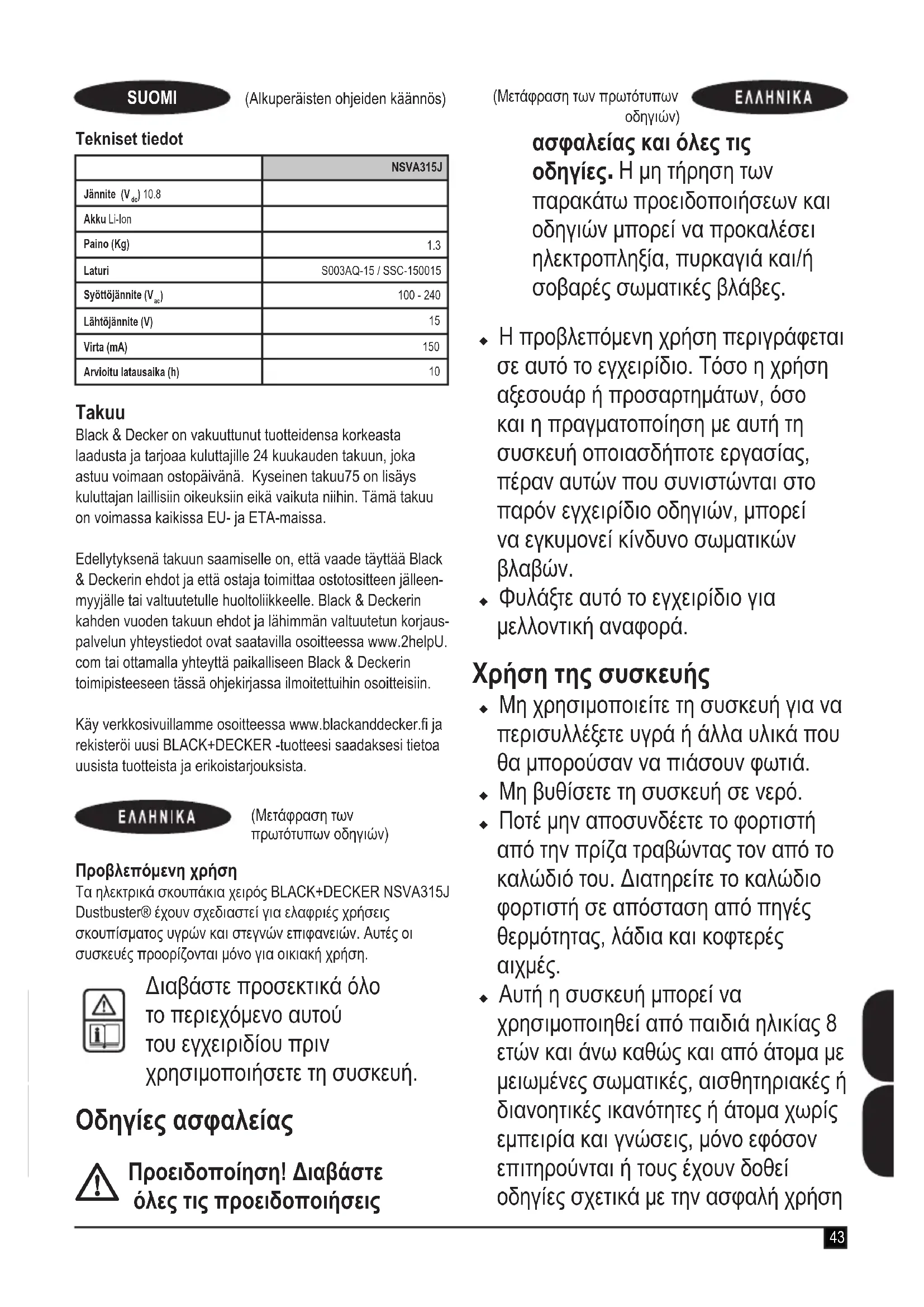 ΕΓΧΕΙΡΊΔΙΟ ΧΡΉΣΗΣ NSVA315J BLACK & DECKER