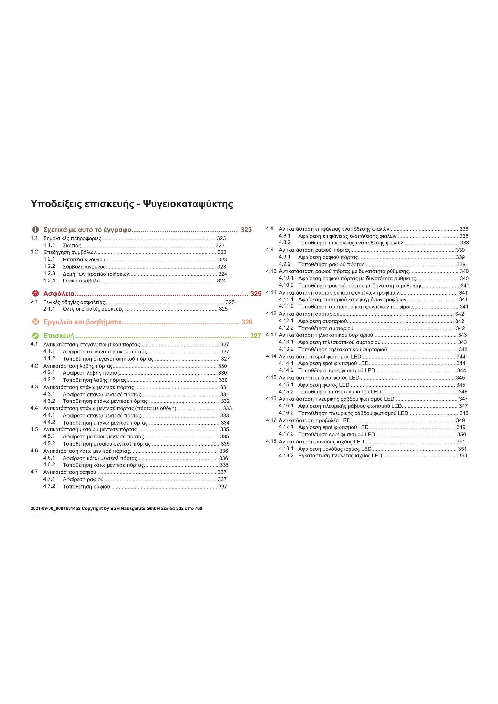 Εγκατάσταση πλακέτας ισχύος LED ..................................................353 Yποδείξεις επισκευής-Ψυγειοκαταψύκτης 2021-09-30_9001631452 Copyright by BSH Hausgeräte GmbH Σελίδα322από769Σχετικά με αυτό το έγγραφο