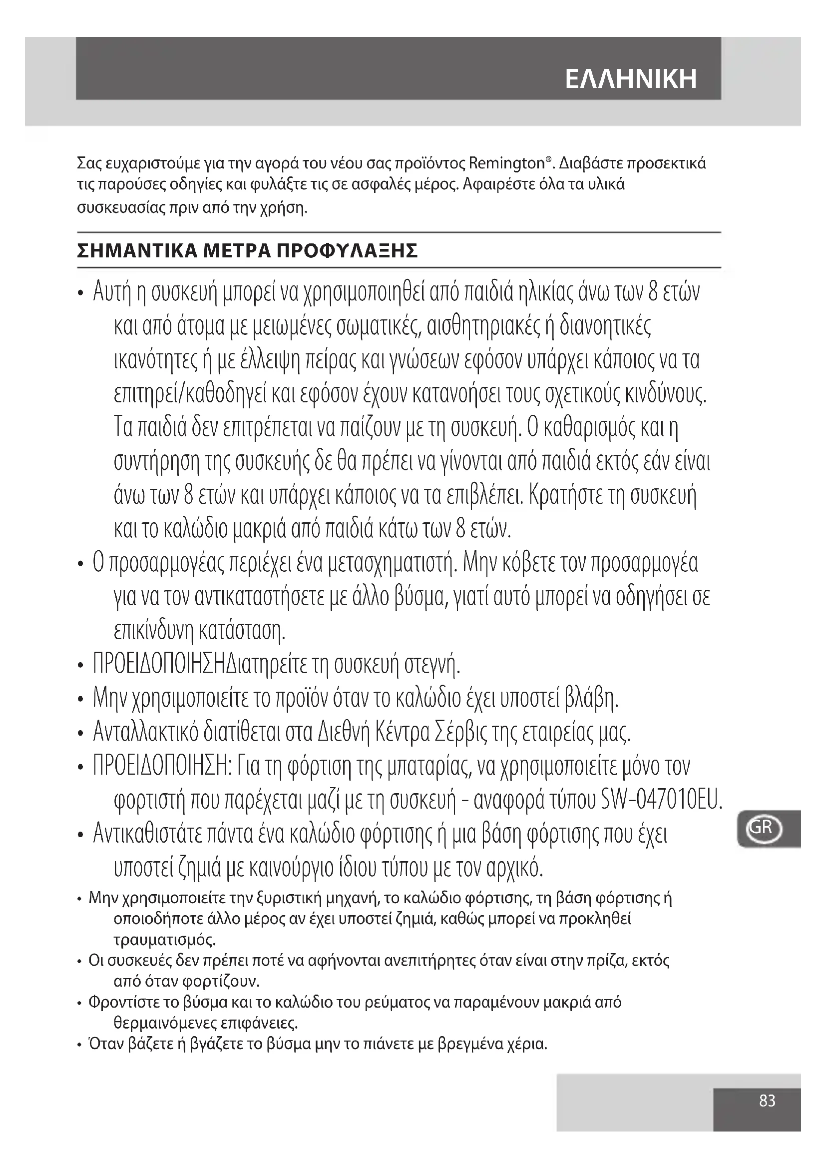 ΕΓΧΕΙΡΊΔΙΟ ΧΡΉΣΗΣ Style Series R4 REMINGTON