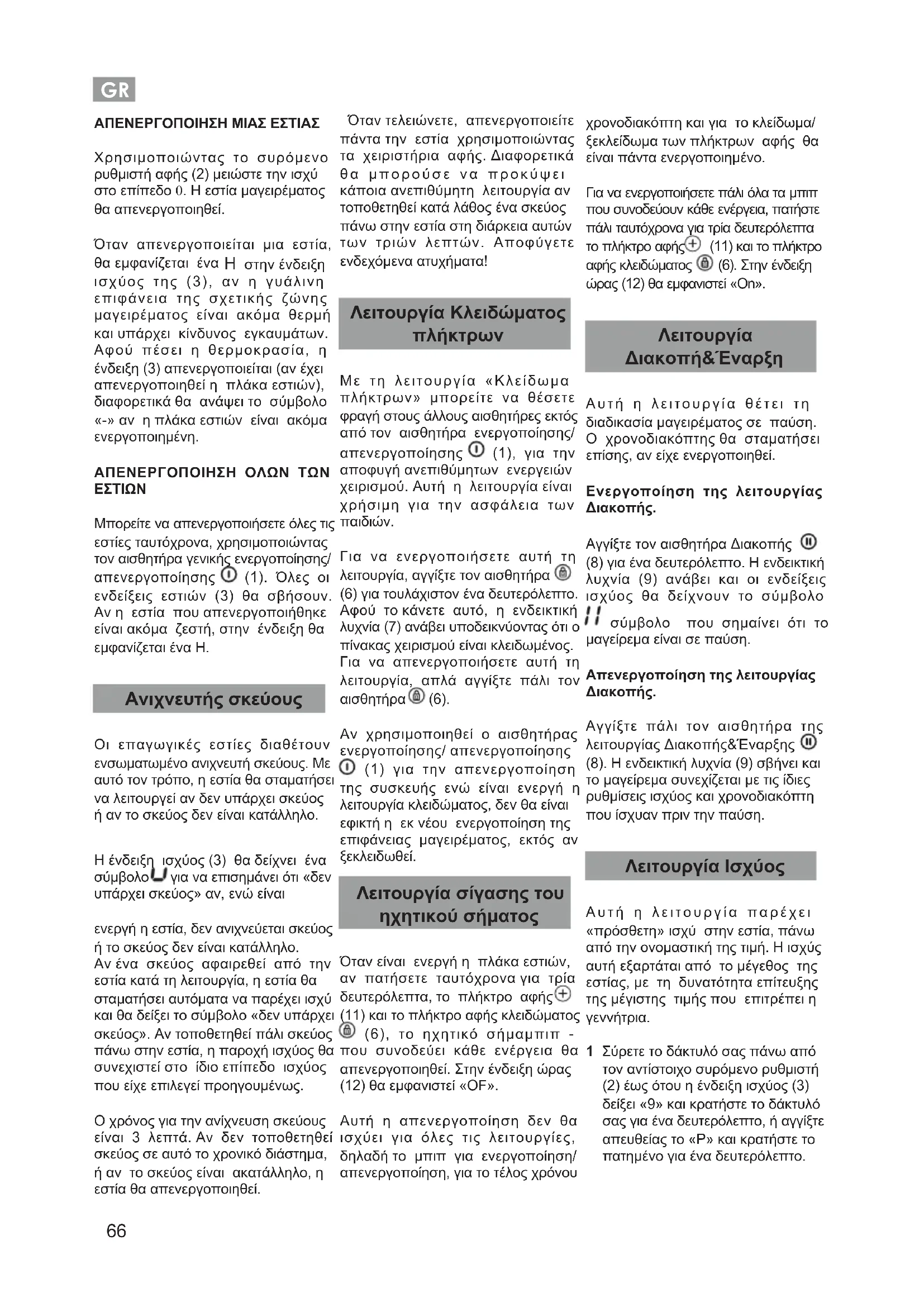 Με την ενεργοποίηση της λειτουργίας Ισχύος σε μια εστία, μπορεί να επηρεαστεί η απόδοση ορισμένων από τις άλλες εστίες και το επίπεδο ισχύος τους να μειωθεί, κάτι που θα εμφανιστεί στην αντίστοιχη ένδειξη (3). Η απενεργοποίηση της λειτουργίας Ισχύος πριν περάσει ο χρόνος λειτουργίας της, μπορεί να γίνει είτε αγγίζοντας το «συρόμενο ρυθμιστή» για να τροποποιήσετε το επίπεδο ισχύος της είτε επαναλαμβάνοντας το βήμα 3.