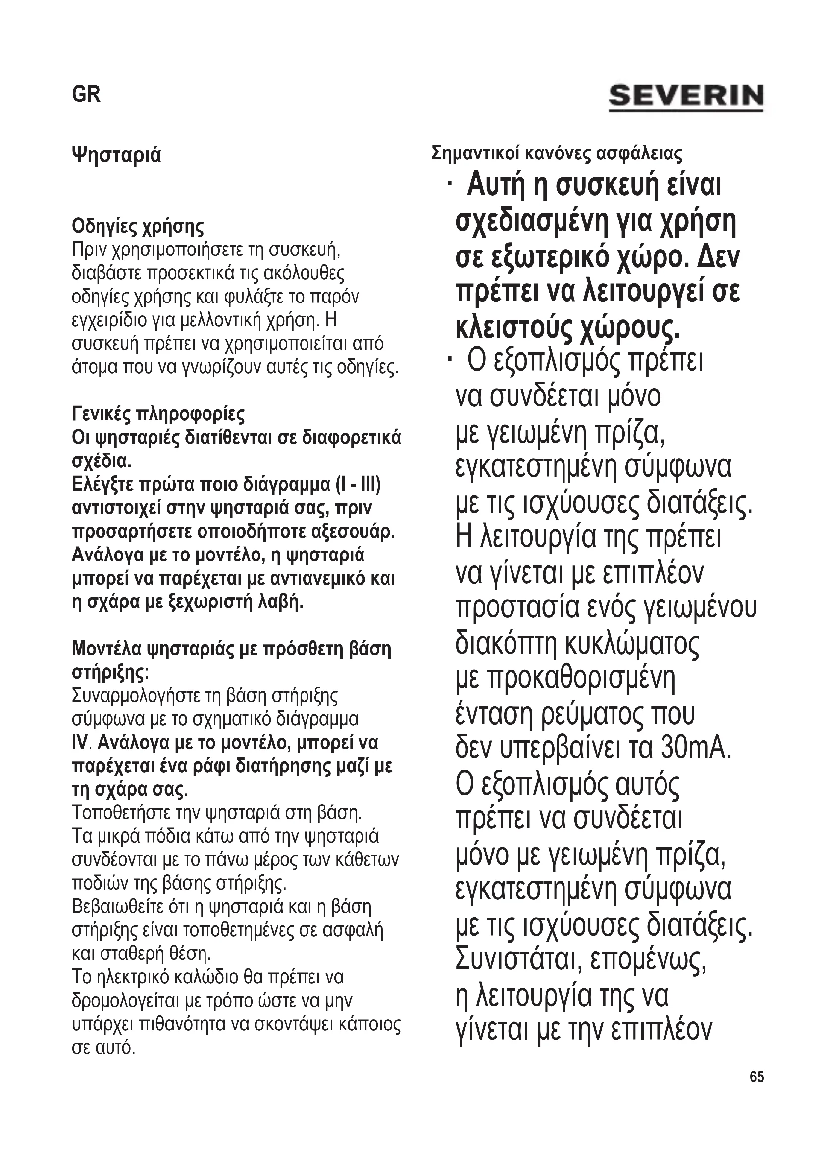 Οδηγίες χρήσης Πριν χρησιμοποιήσετε τη συσκευή, διαβάστε προσεκτικά τις ακόλουθες οδηγίες χρήσης και φυλάξτε το παρόν εγχειρίδιο για μελλοντική χρήση. Η συσκευή πρέπει να χρησιμοποιείται από άτομα που να γνωρίζουν αυτές τις οδηγίες. Γενικές πληροφορίες Οι ψησταριές διατίθενται σε διαφορετικά