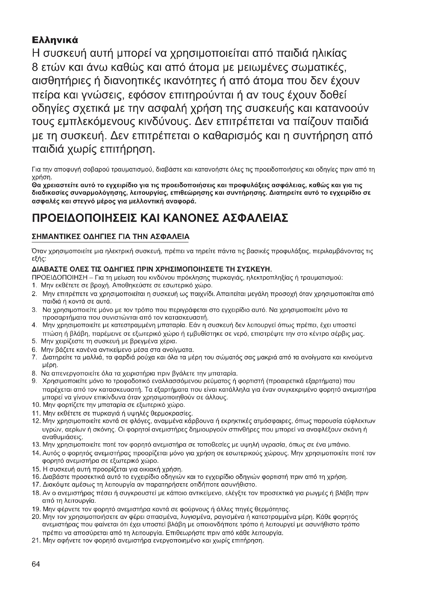 21. Μην αφήνετε τον φορητό ανεμιστήρα ενεργοποιημένο και χωρίς επιτήρηση.65