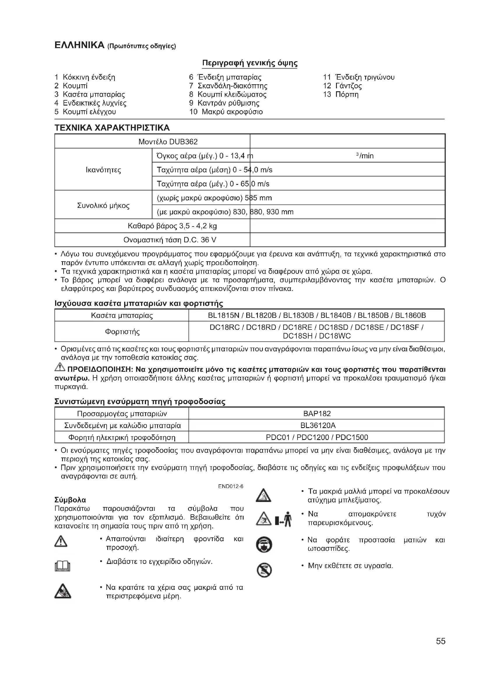 Κατεβάστε τις οδηγίες για το φυσητήρας φύλλων σε μορφή PDF δωρεάν! Βρείτε το εγχειρίδιό σας DUB362Z - MAKITA και πάρτε ξανά την ηλεκτρονική σας συσκευή στα χέρια σας. Σε αυτή τη σελίδα δημοσιεύονται όλα τα έγγραφα που απαιτούνται για τη χρήση της συσκευής σας. DUB362Z της μάρκας MAKITA.
