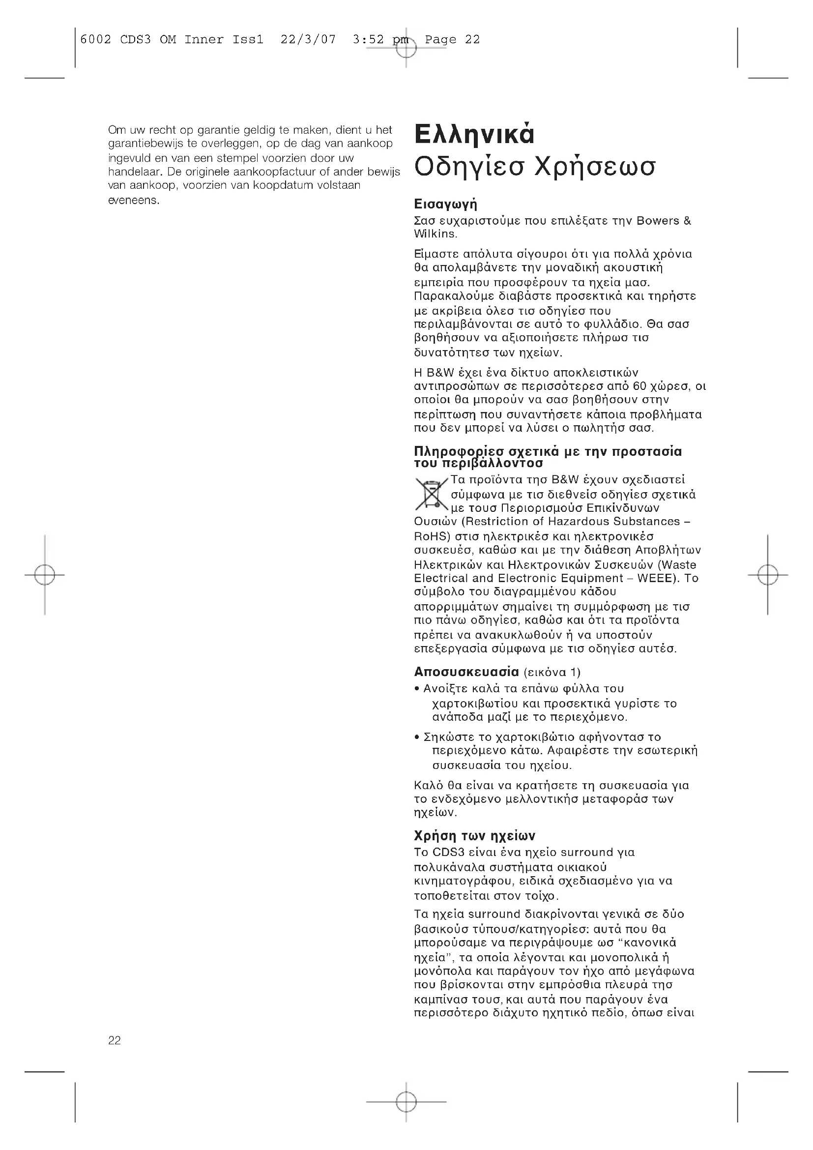 6002 CDS3 OM Inner Iss1 22/3/07 3:52 pm Page 22τ α δίπολα (ή διπολικά) ηχεία. Κάθε ένασ απ
