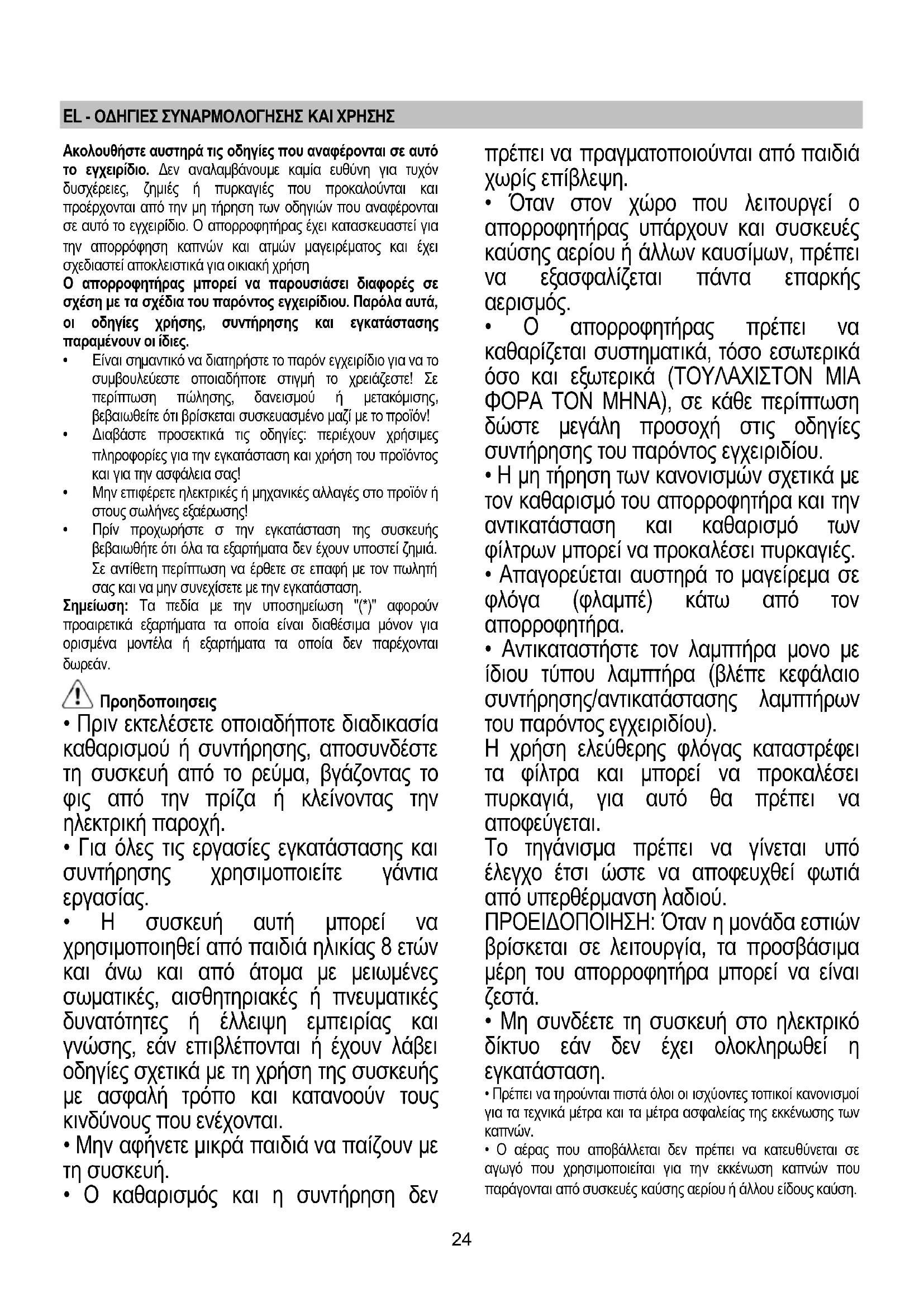 - Ο αέρας που αποβάλλεται δεν πρέπει να κατευθύνεται σε αγωγό που χρησιμοποιείται για την εκκένωση καπνών που παράγονται από συσκευές καύσης αερίου ή άλλου είδους καύση.25