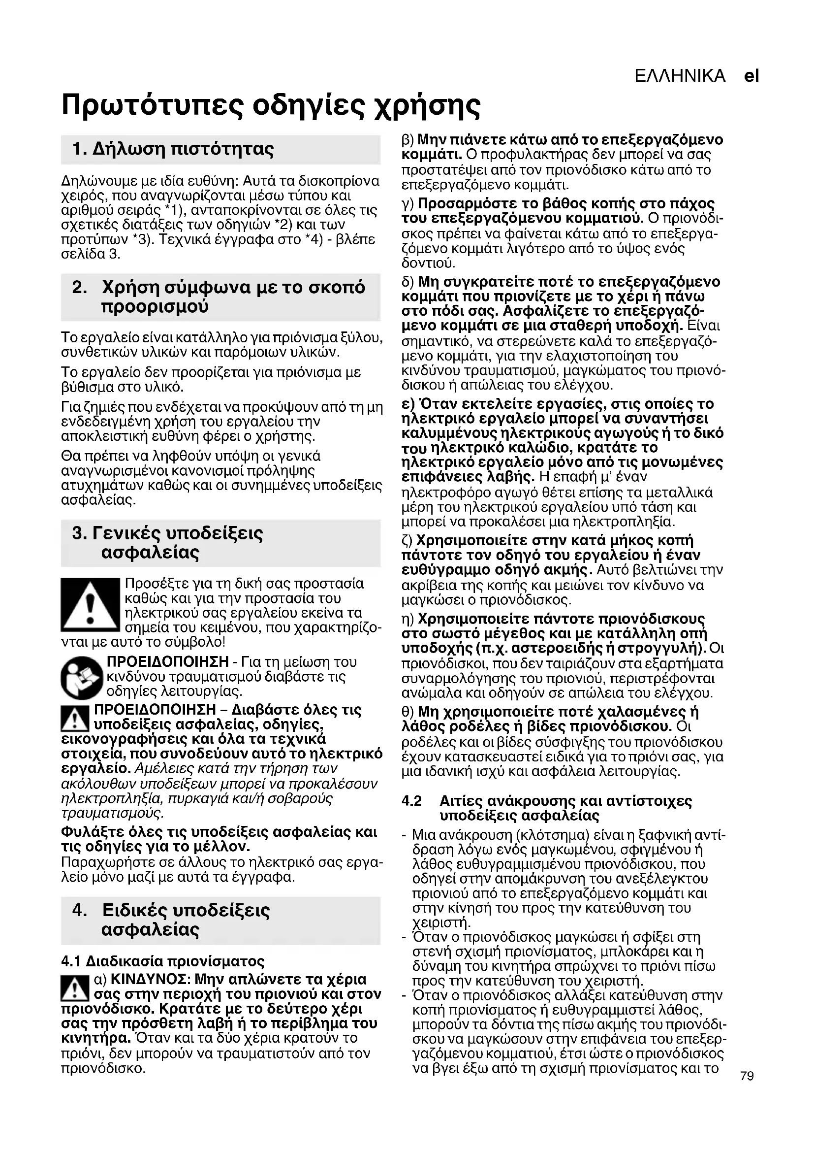 Προσέξτε για τη δική σας προστασία καθώς και για την προστασία του ηλεκτρικού σας εργαλείου εκείνα τα σημεία του κειμένου, που χαρακτηρίζο- νται με αυτό το σύμβολο! ΠΡΟΕΙΔΟΠΟΙΗΣΗ - Για τη μείωση του κινδύνου τραυματισμού διαβάστε τις οδηγίες λειτουργίας. ΠΡΟΕΙΔΟΠΟΙΗΣΗ – Διαβάστε όλες τις υποδείξεις ασφαλείας, οδηγίες, εικονογραφήσεις και όλα τα τεχνικά στοιχεία, που συνοδεύουν αυτό το ηλεκτρικό εργαλείο. Αμέλειες κατά την τήρηση των ακόλουθων υποδείξεων μπορεί να προκαλέσουν ηλεκτροπληξία, πυρκαγιά και/ή σοβαρούς τραυματισμούς. Φυλάξτε όλες τις υποδείξεις ασφαλείας και τις οδηγίες για το μέλλον. Παραχωρήστε σε άλλους το ηλεκτρικό σας εργα- λείο μόνο μαζί με αυτά τα έγγραφα.