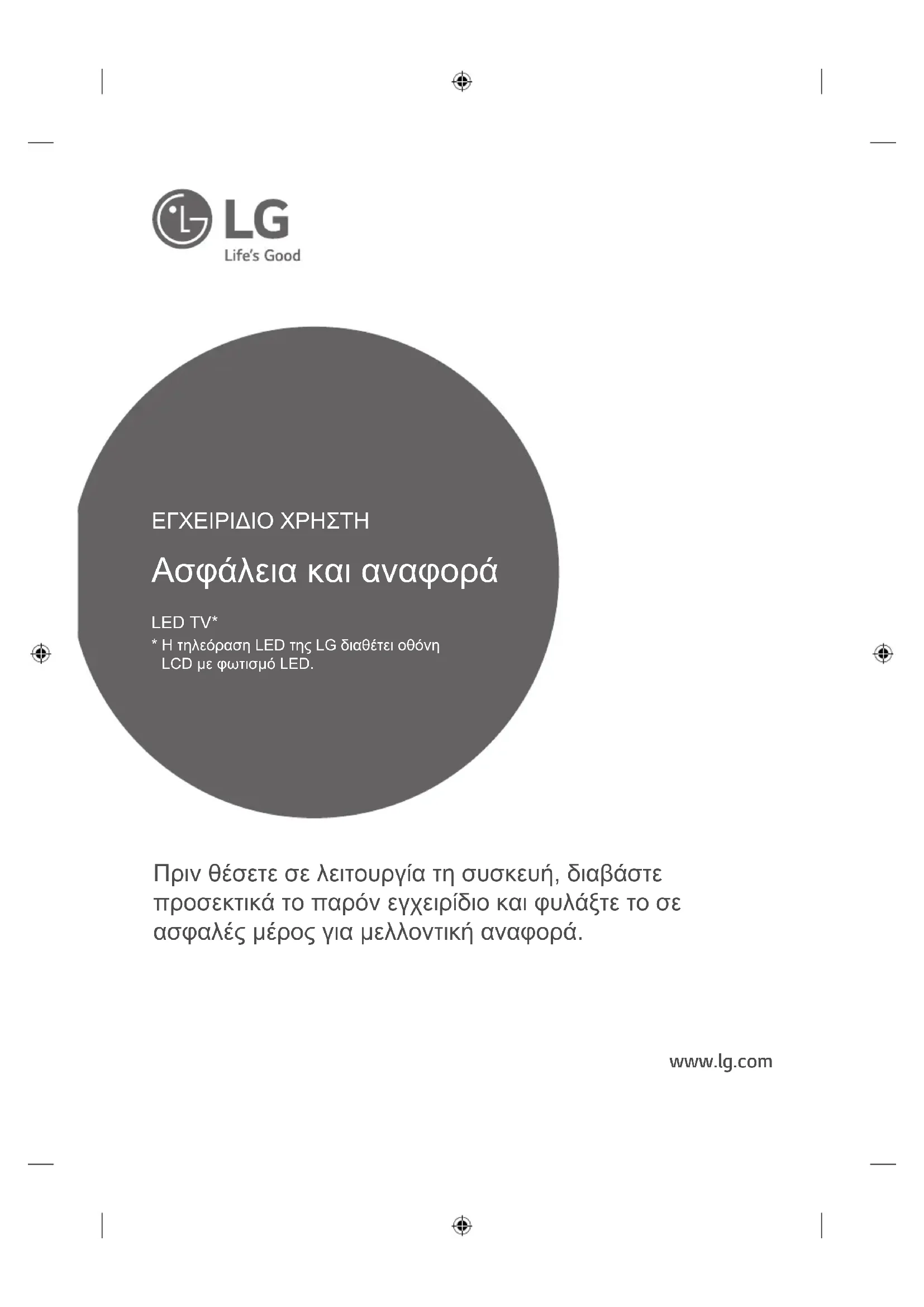 - Start de PC opnieuw op terwijl de TV is ingeschakeld.www.lg.com Πριν θέσετε σε λειτουργία τη συσκευή, διαβάστε προσεκτικά το παρόν εγχειρίδιο και φυλάξτε το σε ασφαλές μέρος για μελλοντική αναφορά. Ασφάλεια και αναφορά ΕΓΧΕΙΡΙΔΙΟ ΧΡΗΣΤΗ LED TV*