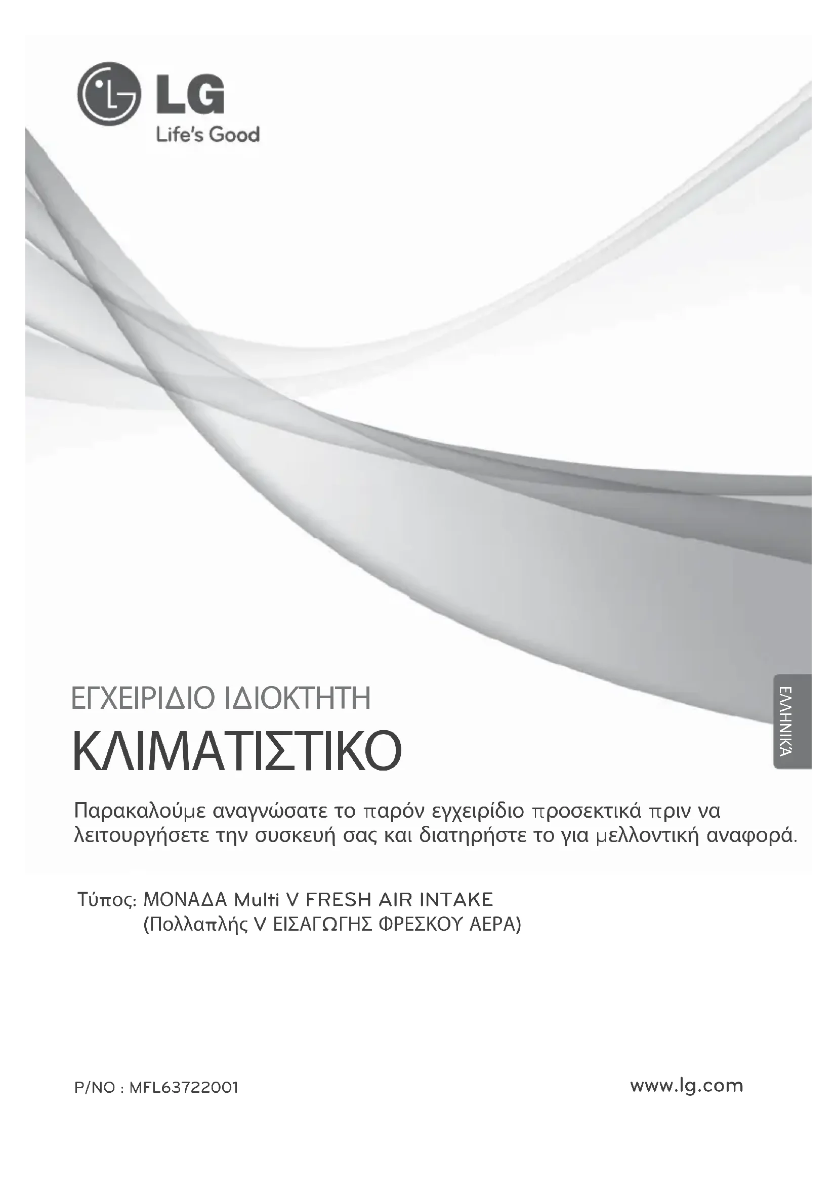 www.lg.com ΕΛΛΗΝΙΚΆ2 Μονάδα Εισόδου Φρέσκου Αέρα Εγχειρίδιο Ιδιοκτήτη Μονάδας . Fresh Air Intake. ΠΙΝΑΚΑΣ ΠΕΡΙΕΧΟΜΕΝΩΝ ΓΙΑ ΤΑ ΑΡΧΕΙΑ ΣΑΣ Γράψτε το μοντέλο και το σειριακό αριθμό εδώ: