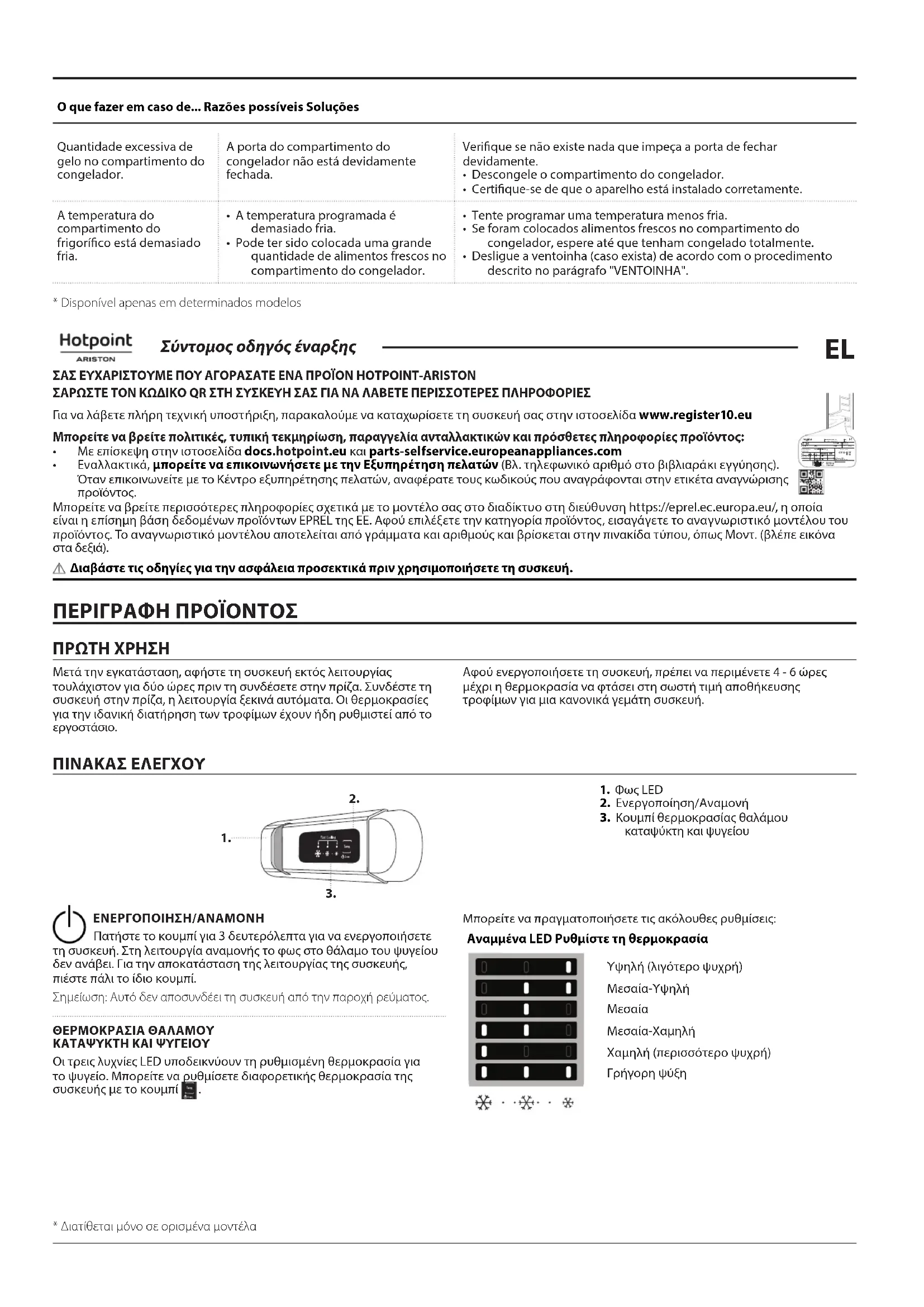 Σύντομος οδηγός έναρξης ΣΑΣ ΕΥΧΑΡΙΣΤΟΥΜΕ ΠΟΥ ΑΓΟΡΑΣΑΤΕ ΕΝΑ ΠΡΟΪΟΝ HOTPOINT-ARISTON ΣΑΡΩΣΤΕ ΤΟΝ ΚΩΔΙΚΟ QR ΣΤΗ ΣΥΣΚΕΥΗ ΣΑΣ ΓΙΑ ΝΑ ΛΑΒΕΤΕ ΠΕΡΙΣΣΟΤΕΡΕΣ ΠΛΗΡΟΦΟΡΙΕΣ Για να λάβετε πλήρη τεχνική υποστήριξη, παρακαλούμε να καταχωρίσετε τη συσκευή σας στην ιστοσελίδα www . register10 . eu Μπορείτε να βρείτε πολιτικές, τυπική τεκμηρίωση, παραγγελία ανταλλακτικών και πρόσθετες πληροφορίες προϊόντος: