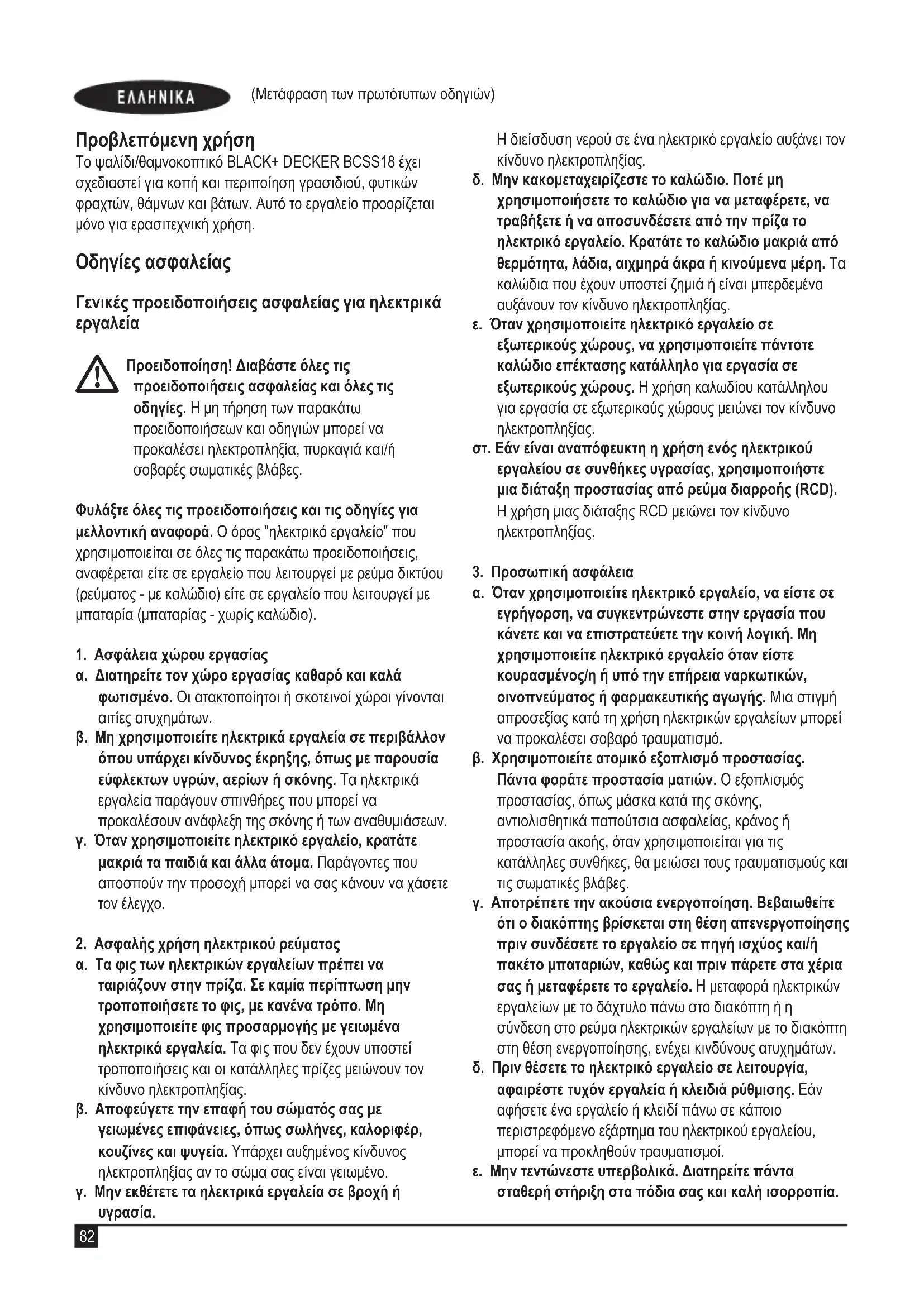ΕΓΧΕΙΡΊΔΙΟ ΧΡΉΣΗΣ BCSS18 BLACK & DECKER