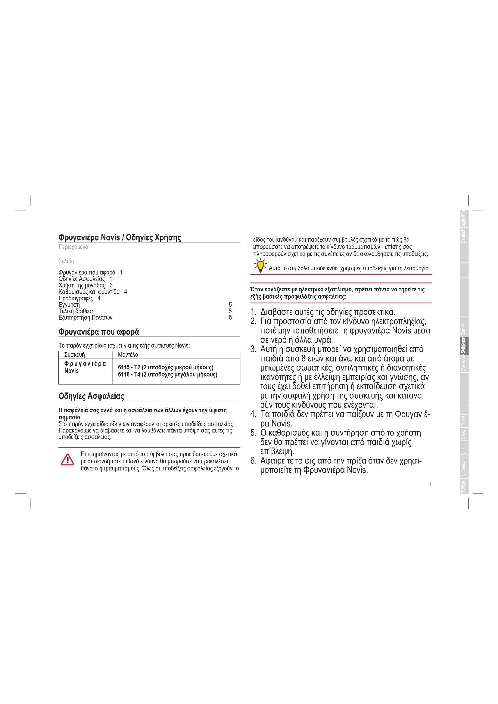 Φρυγανιέρα Novis / Οδηγίες Χρήσης Περιεχόμενα