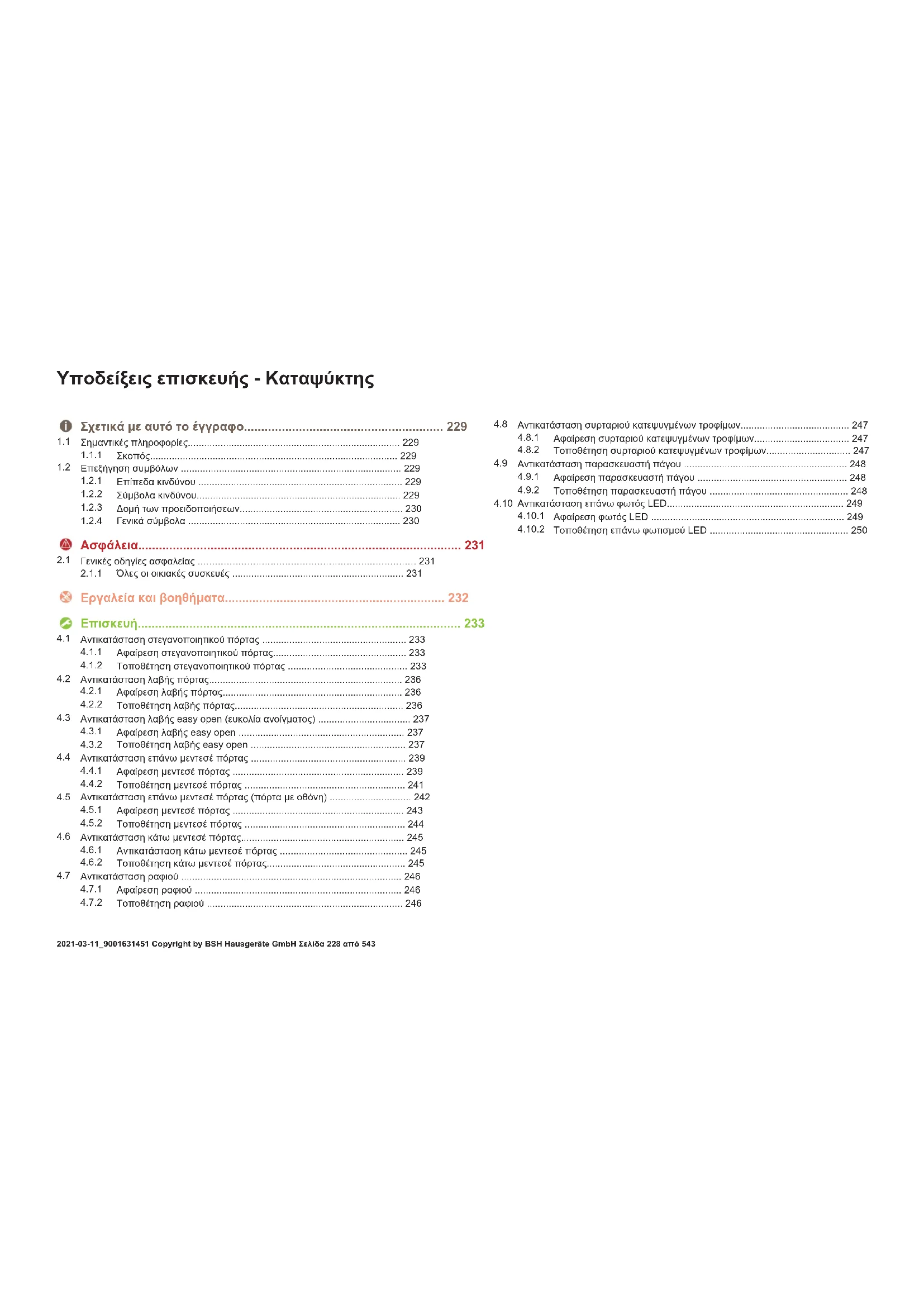 Τοποθέτηση επάνω φωτισμού LED ...................................................250 Yποδείξεις επισκευής-Καταψύκτης 2021-03-11_9001631451 Copyright by BSH Hausgeräte GmbH Σελίδα228από543Σχετικά με αυτό το έγγραφο