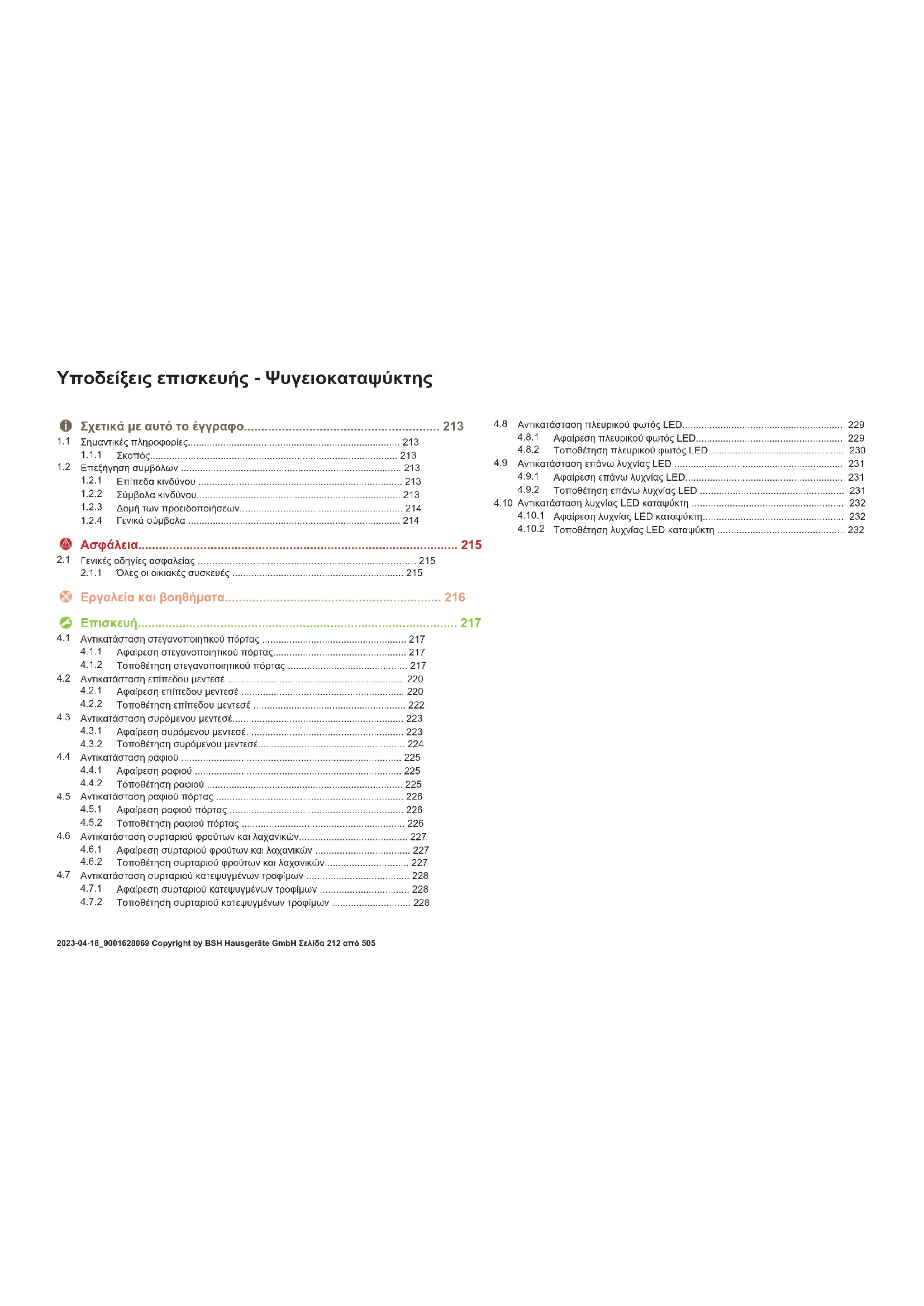 Τοποθέτηση λυχνίας LED καταψύκτη ...............................................232 Yποδείξεις επισκευής-Ψυγειοκαταψύκτης 2023-04-18_9001628069 Copyright by BSH Hausgeräte GmbH Σελίδα212από505Σχετικά με αυτό το έγγραφο