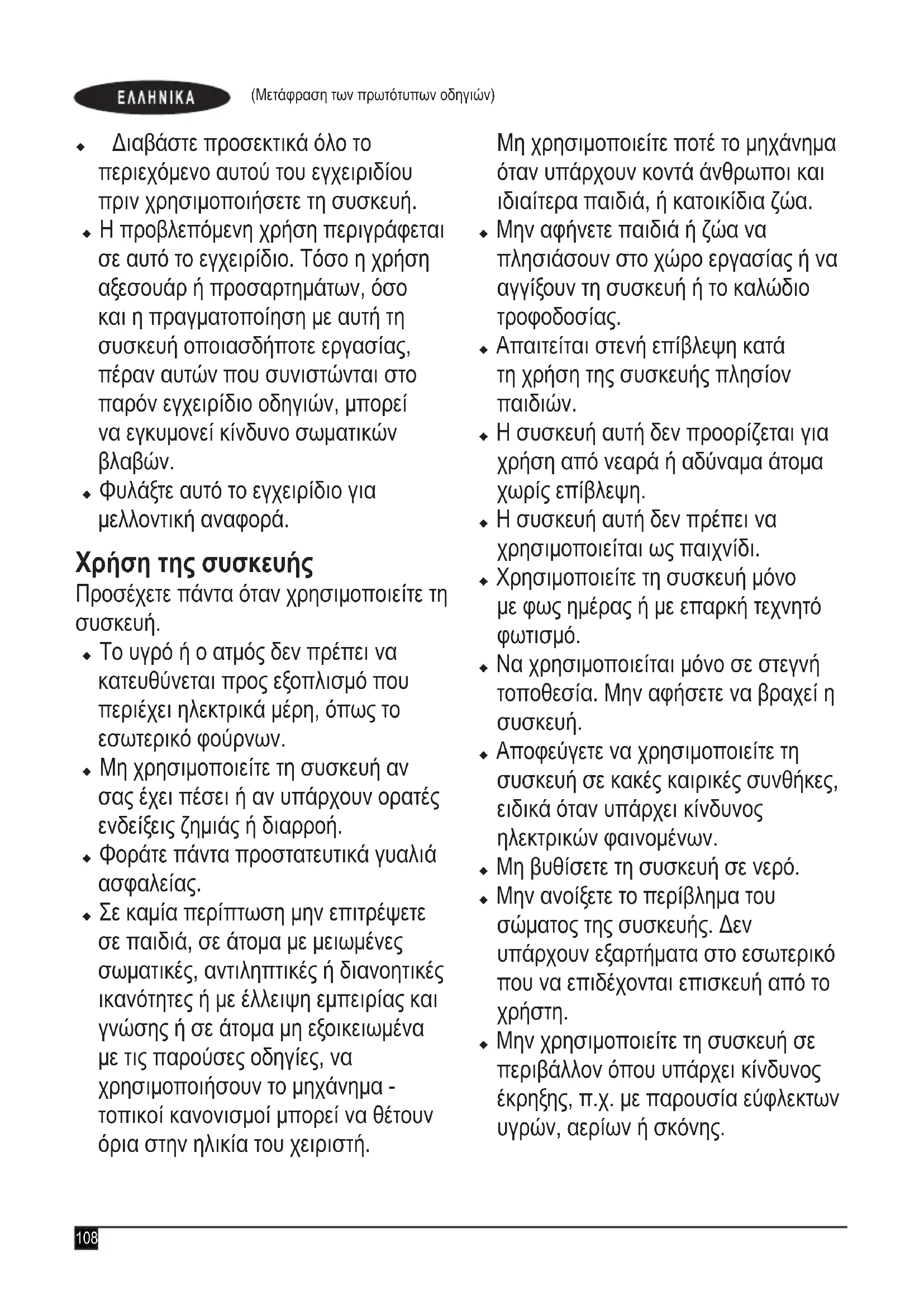 u Φυλάξτε αυτό το εγχειρίδιο για μελλοντική αναφορά. Χρήση της συσκευής Προσέχετε πάντα όταν χρησιμοποιείτε τη
