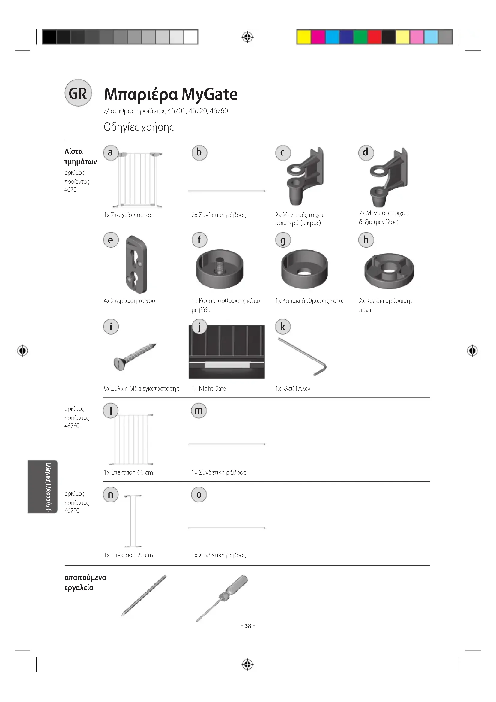 Μπαριέρα MyGate // αριθό προϊόντο 46701, 46720, 46760 Οδηγίε χρήση ελληνική γλώσσα (GR)- 39 - ελληνική γλώσσα (GR)