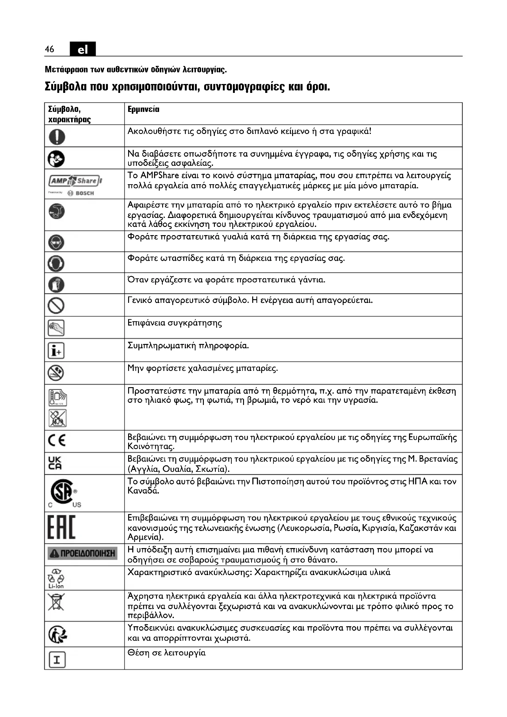 Μετάφραση των αυθεντικών οδηγιών λειτουργίας. Σύμβολα που χρησιμοποιούνται, συντομογραφίες και όροι.