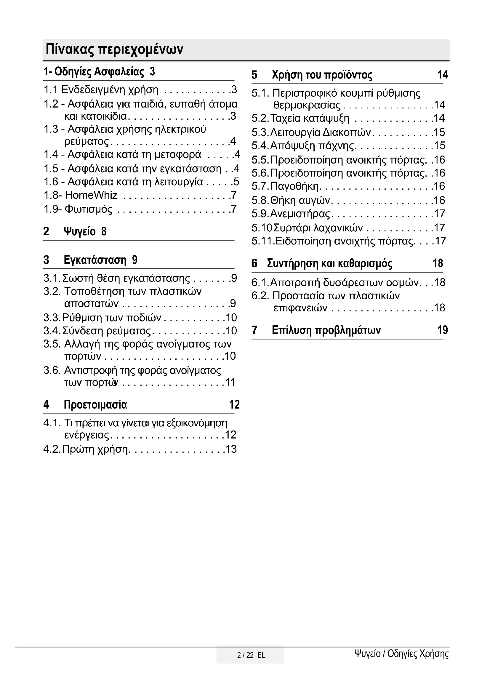 1- Οδηγίες Ασφαλείας4 / 22 EL
