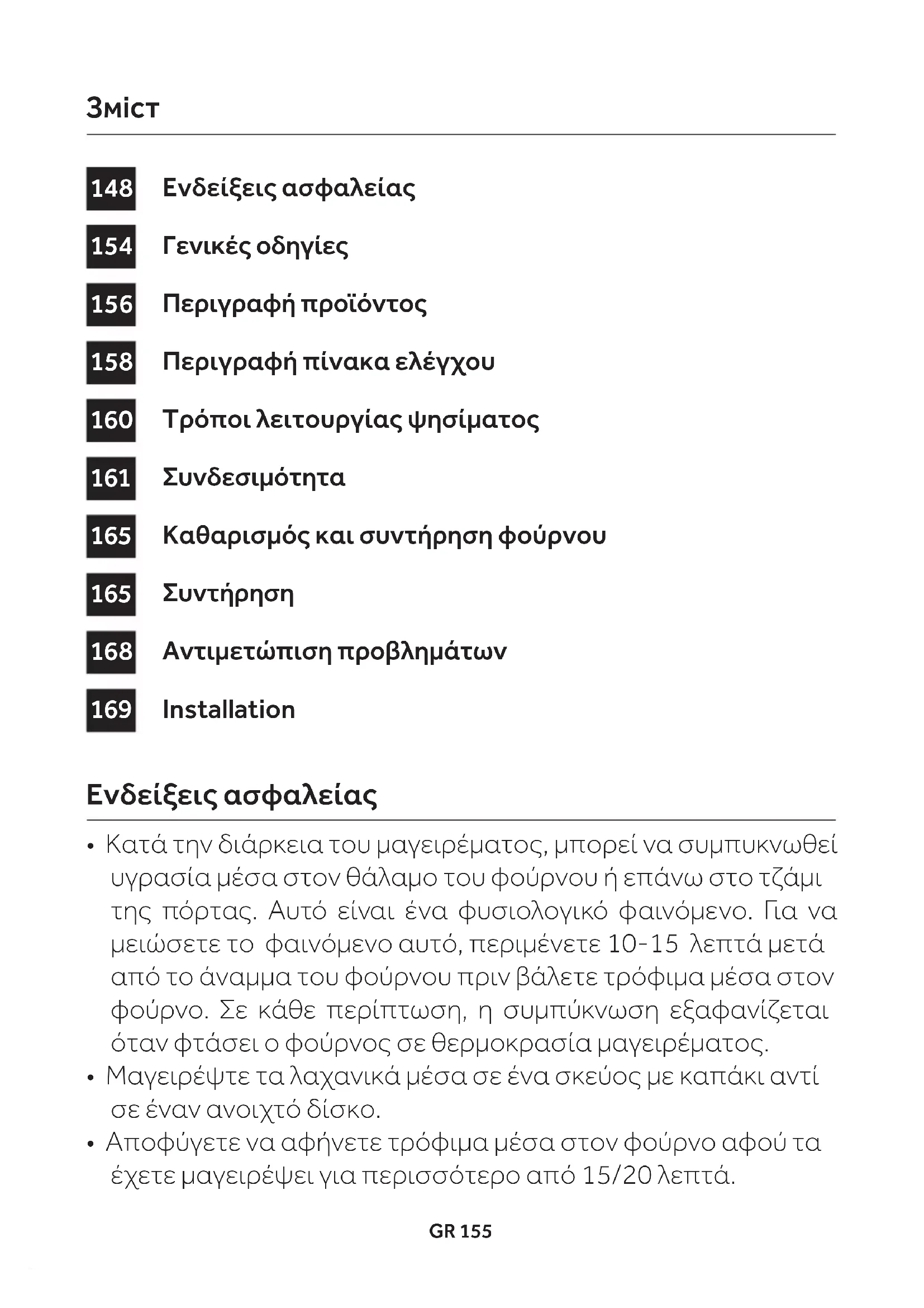 - Αποφύγετε να αφήνετε τρόφιμα μέσα στον φούρνο αφού τα έχετε μαγειρέψει για περισσότερο από 15/20 λεπτά. Ενδείξεις ασφαλείαςGR 156