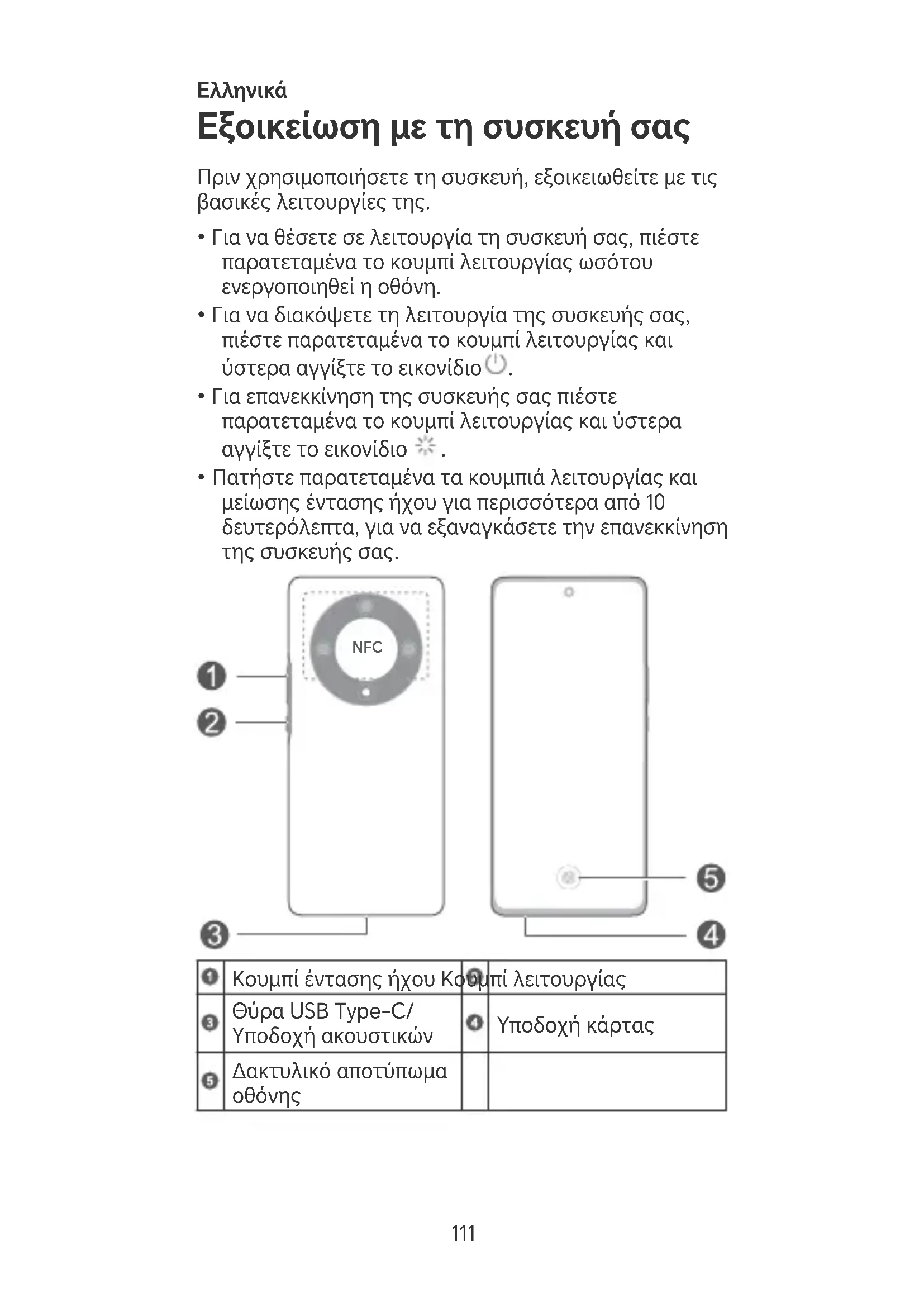 111• Κατά τη χρήση της λειτουργίας NFC πρέπει να φέρνετε και να κρατάτε την περιοχή NFC κοντά σε άλλες συσκευές ή άλλα αντικείμενα.