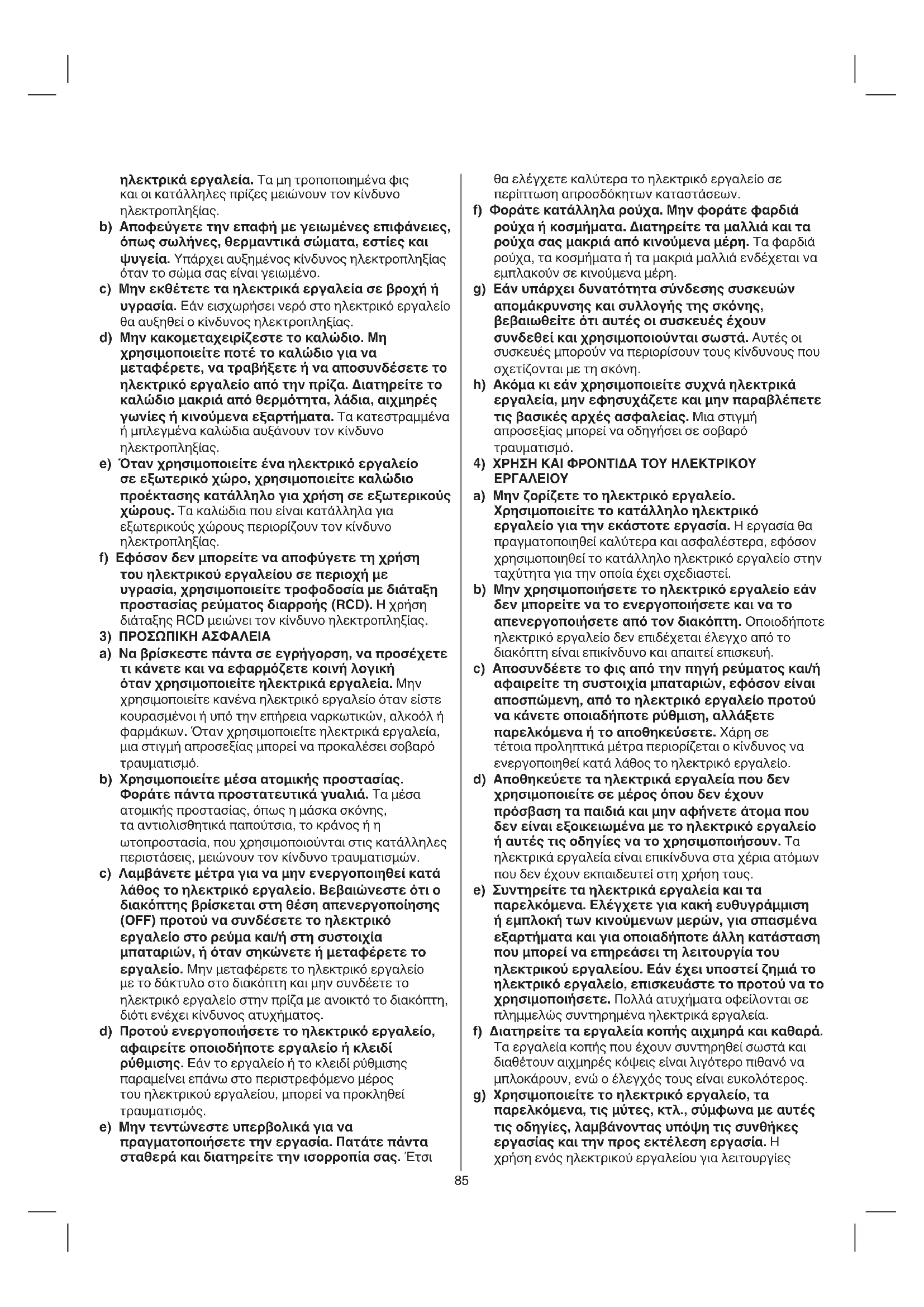 a) Το ηλεκτρικό εργαλείο πρέπει να επισκευάζεται μόνο από εξειδικευμένο επαγγελματία, χρησιμοποιώντας μόνο πανομοιότυπα ανταλλακτικά. Έτσι, το ηλεκτρικό σας εργαλείο θα παραμείνει ασφαλές.87