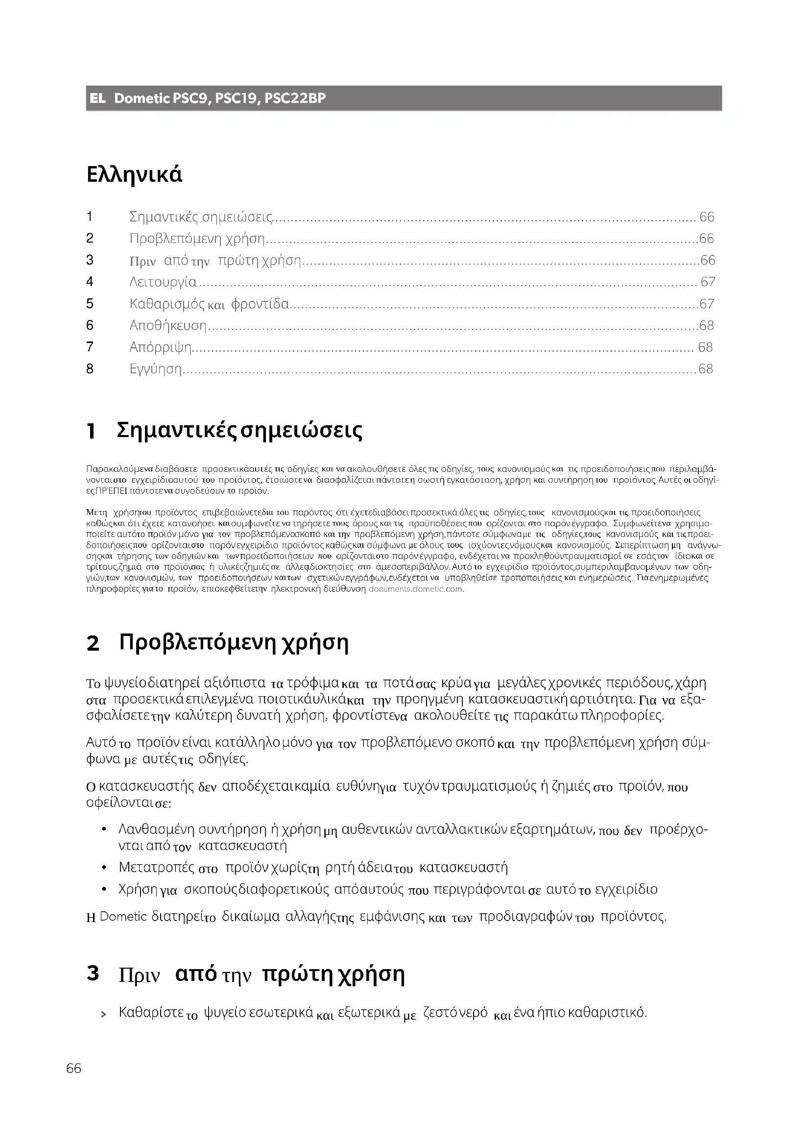 Κατεβάστε τις οδηγίες για το Ψυγείο σε μορφή PDF δωρεάν! Βρείτε το εγχειρίδιό σας PSC 9 - DOMETIC και πάρτε ξανά την ηλεκτρονική σας συσκευή στα χέρια σας. Σε αυτή τη σελίδα δημοσιεύονται όλα τα έγγραφα που απαιτούνται για τη χρήση της συσκευής σας. PSC 9 της μάρκας DOMETIC.