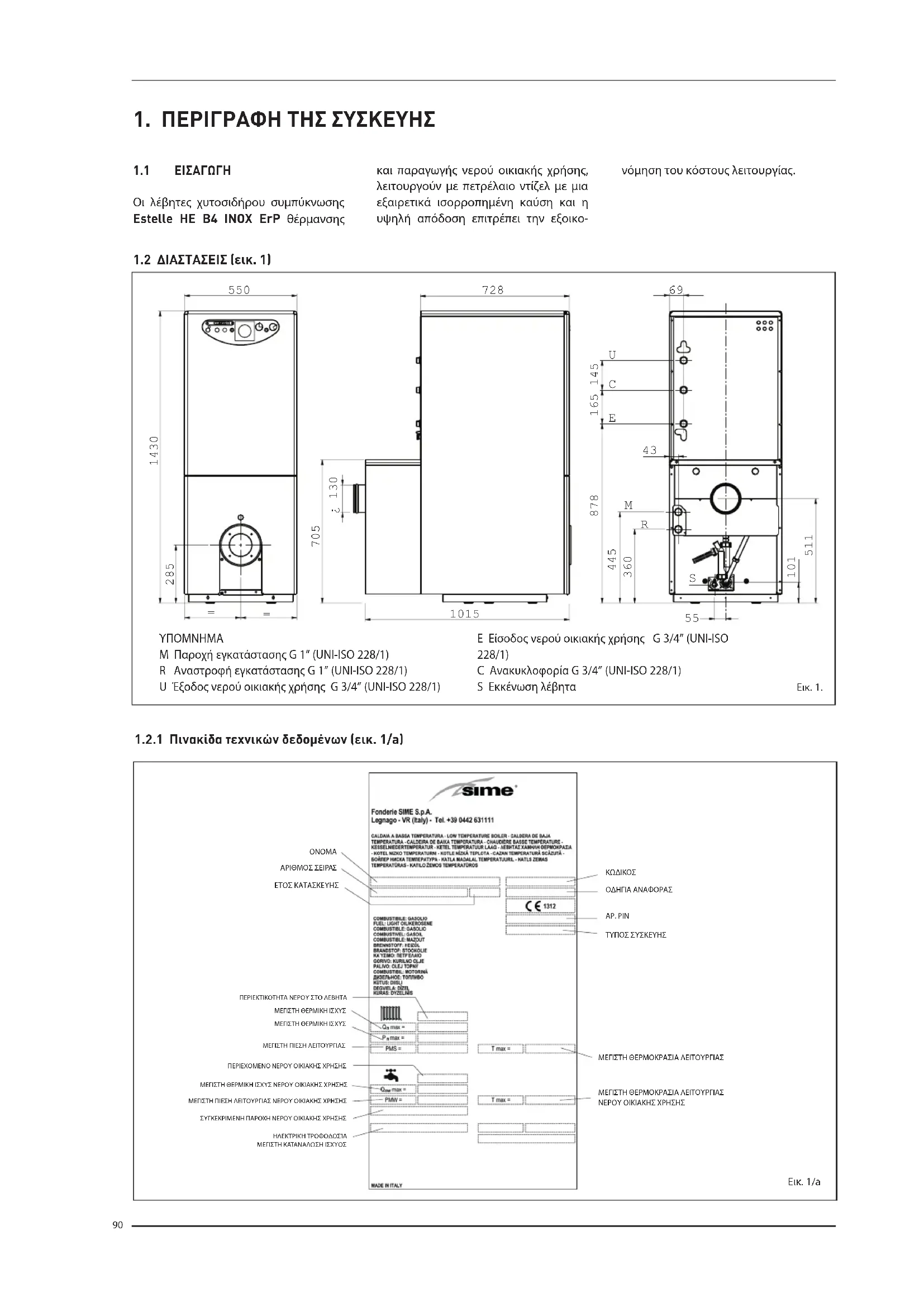 1.2.1 Πινακίδα τεχνικών δεδομένων (εικ. 1/a)