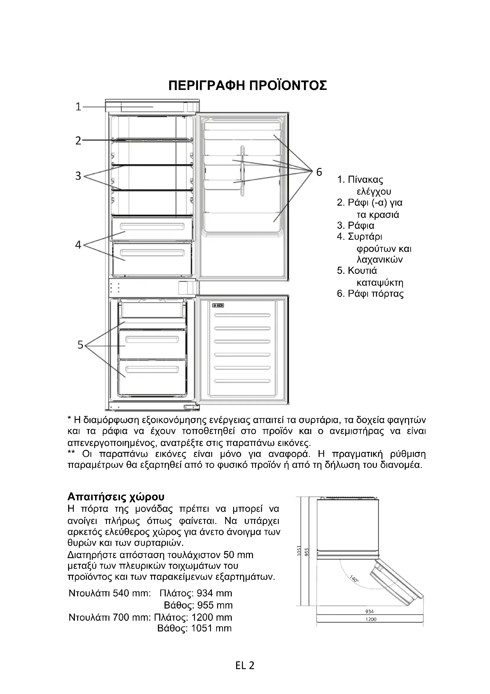 140° Ντουλάπι 540 mm: Πλάτος: 934 mmΒάθος: 955 mmΝτουλάπι 700 mm: Πλάτος: 1200 mmΒάθος: 1051 mm EL 2ΧΡΗΣΗ