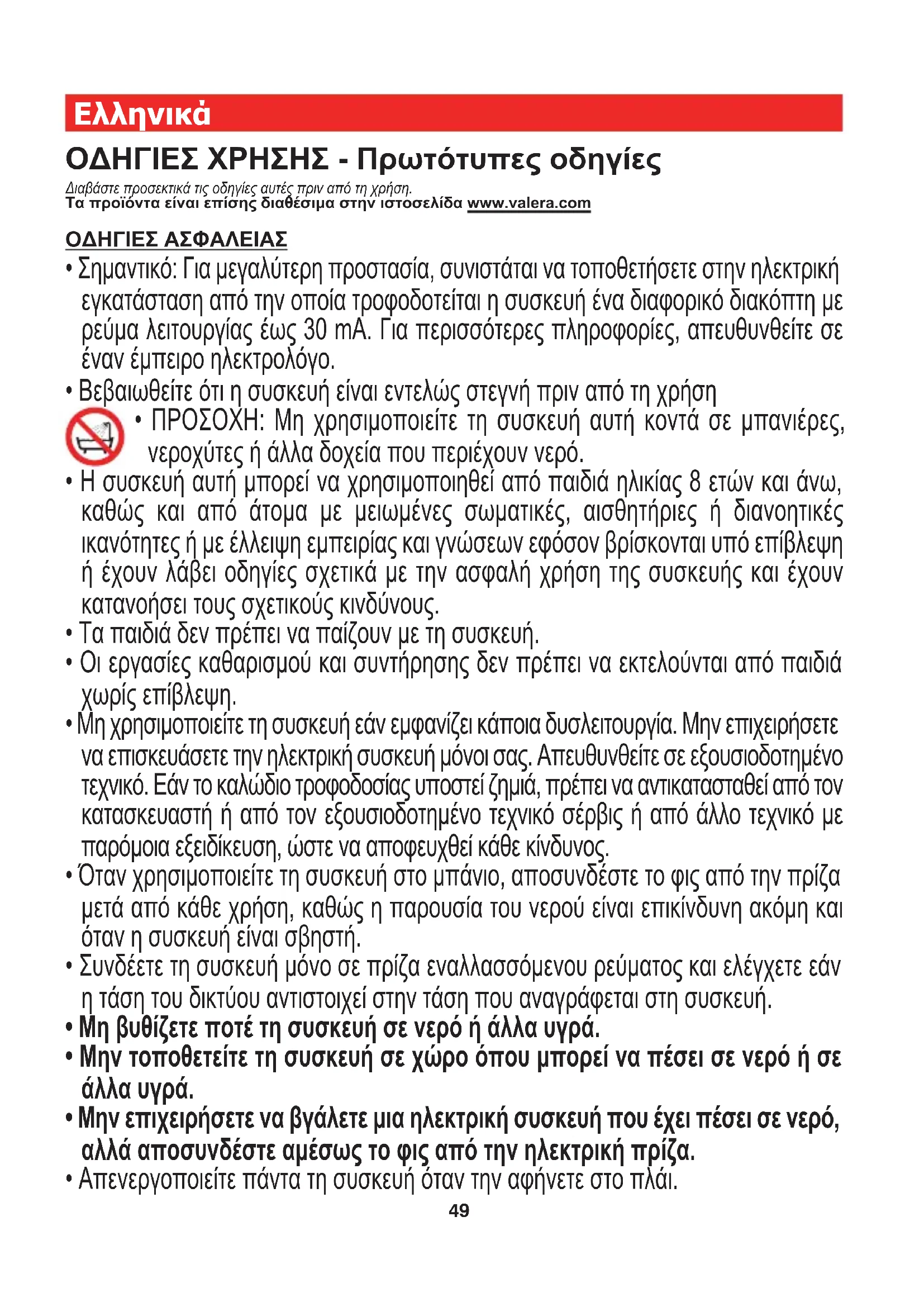ΟΔΗΓΙΕΣ ΧΡΗΣΗΣ - Πρωτότυπες οδηγίες Διαβάστε προσεκτικά τις οδηγίες αυτές πριν από τη χρήση. Τα προϊόντα είναι επίσης διαθέσιμα στην ιστοσελίδα www.valera.com ΟΔΗΓΙΕΣ ΑΣΦΑΛΕΙΑΣ
