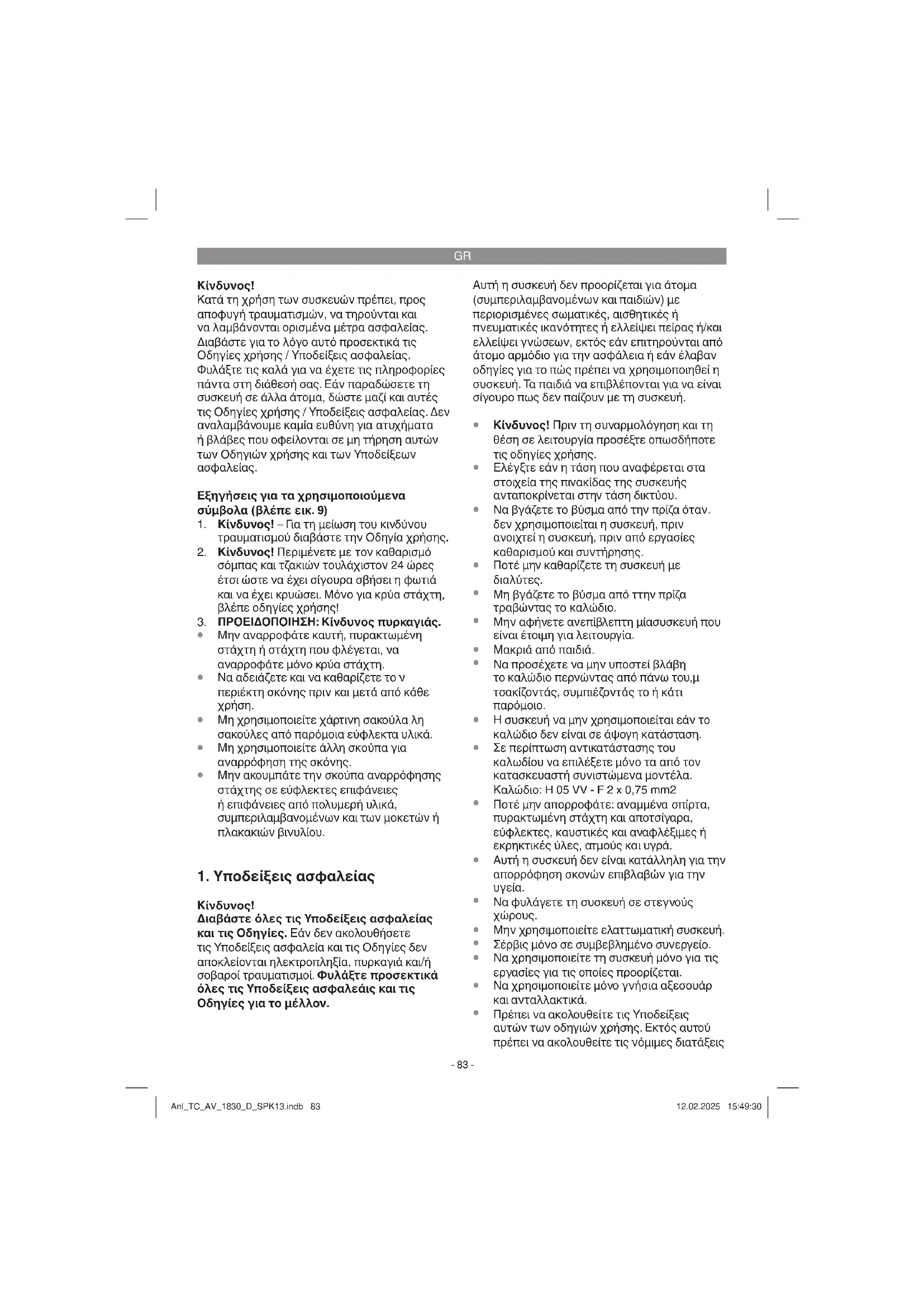 Πρέπει να ακολουθείτε τις Υποδείξεις αυτών των οδηγιών χρήσης. Εκτός αυτού πρέπει να ακολουθείτε τις νόμιμες διατάξεις Anl_TC_AV_1830_D_SPK13.indb 83Anl_TC_AV_1830_D_SPK13.indb 83 12.02.2025 15:49:3012.02.2025 15:49:30GR