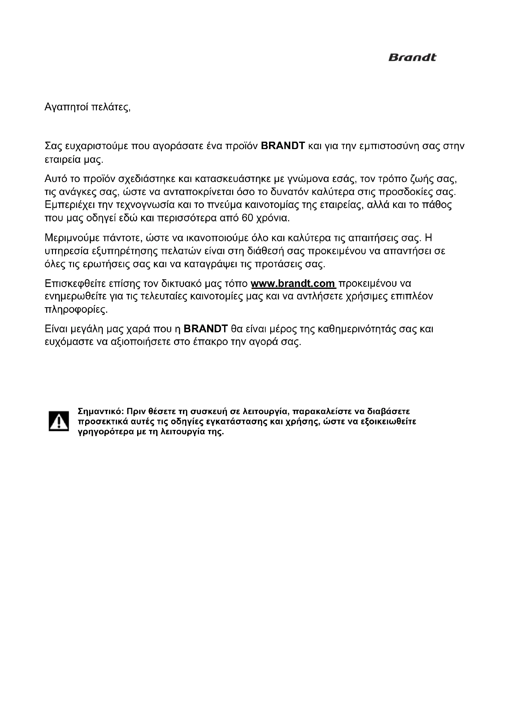 Για να μάθετε περισσότερα σχετικά με τα προϊόντα μας ή να επικοινωνήσετε μαζί μας, μπορείτε να επισκεφθείτε τον δικτυακό μας ιστότοπο: www.brandt.gr
