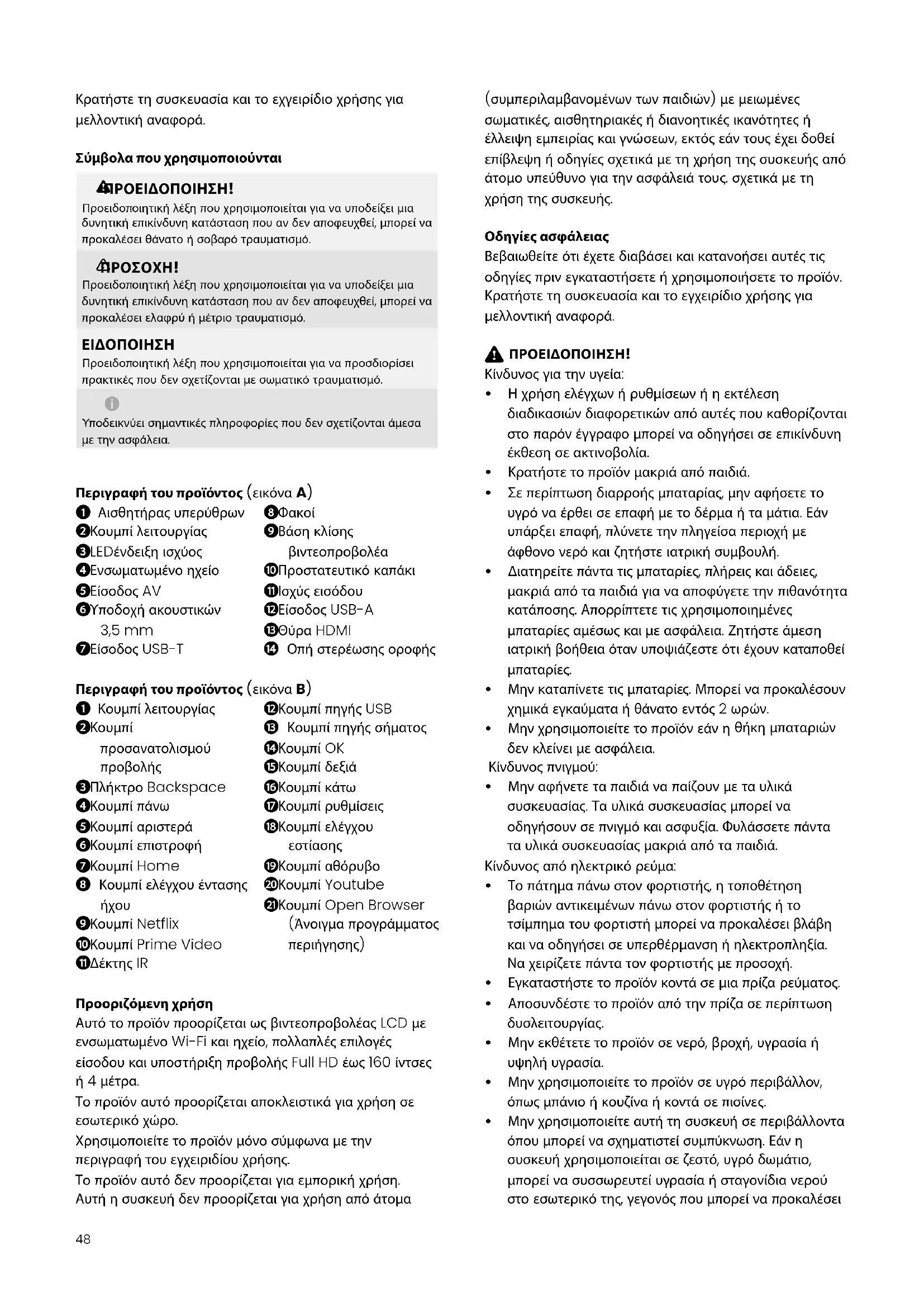 projekcji:Projekcjastołowalubsutowa Wyłączenie odpowiedzialności Aktualizacjeoprogramowaniasprzętowegoi/lub komponentówsprzętowychsąprzeprowadzane regularnie.Wzwiązkuztymniektóreinstrukcje, specyfikacje i ilustracje w niniejszej dokumentacji mogąsięnieznacznieróżnićwzależnościod konkretnej sytuacji. Wszystkie elementy opisane w niniejszejinstrukcjisłużąwyłączniedocelów48 (συμπεριλαμβανομένων των παιδιών) με μειωμένες σωματικές, αισθητηριακές ή διανοητικές ικανότητες ή έλλειψη εμπειρίας και γνώσεων, εκτός εάν τους έχει δοθεί επίβλεψη ή οδηγίες σχετικά με τη χρήση της συσκευής από άτομο υπεύθυνο για την ασφάλειά τους. σχετικά με τη χρήση της συσκευής. Οδηγίες ασφάλειας Βεβαιωθείτε ότι έχετε διαβάσει και κατανοήσει αυτές τις οδηγίες πριν εγκαταστήσετε ή χρησιμοποιήσετε το προϊόν. Κρατήστε τη συσκευασία και το εγχειρίδιο χρήσης για μελλοντική αναφορά. 6 ΠΡΟΕΙΔΟΠΟΙΗΣΗ! Κίνδυνος για την υγεία: