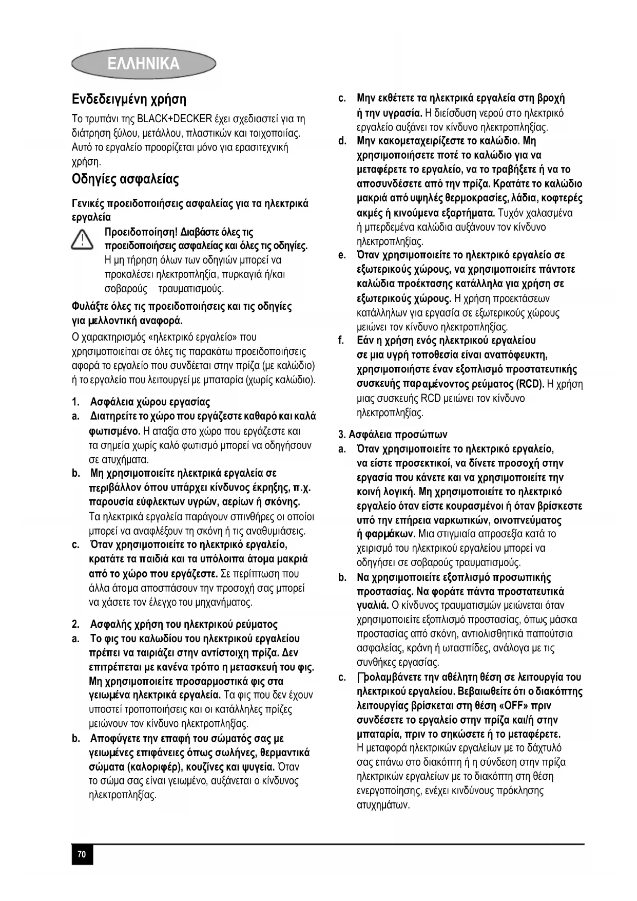 Οδηγίες ασφαλείας Γενικές προειδοποιήσεις ασφαλείας για τα ηλεκτρικά