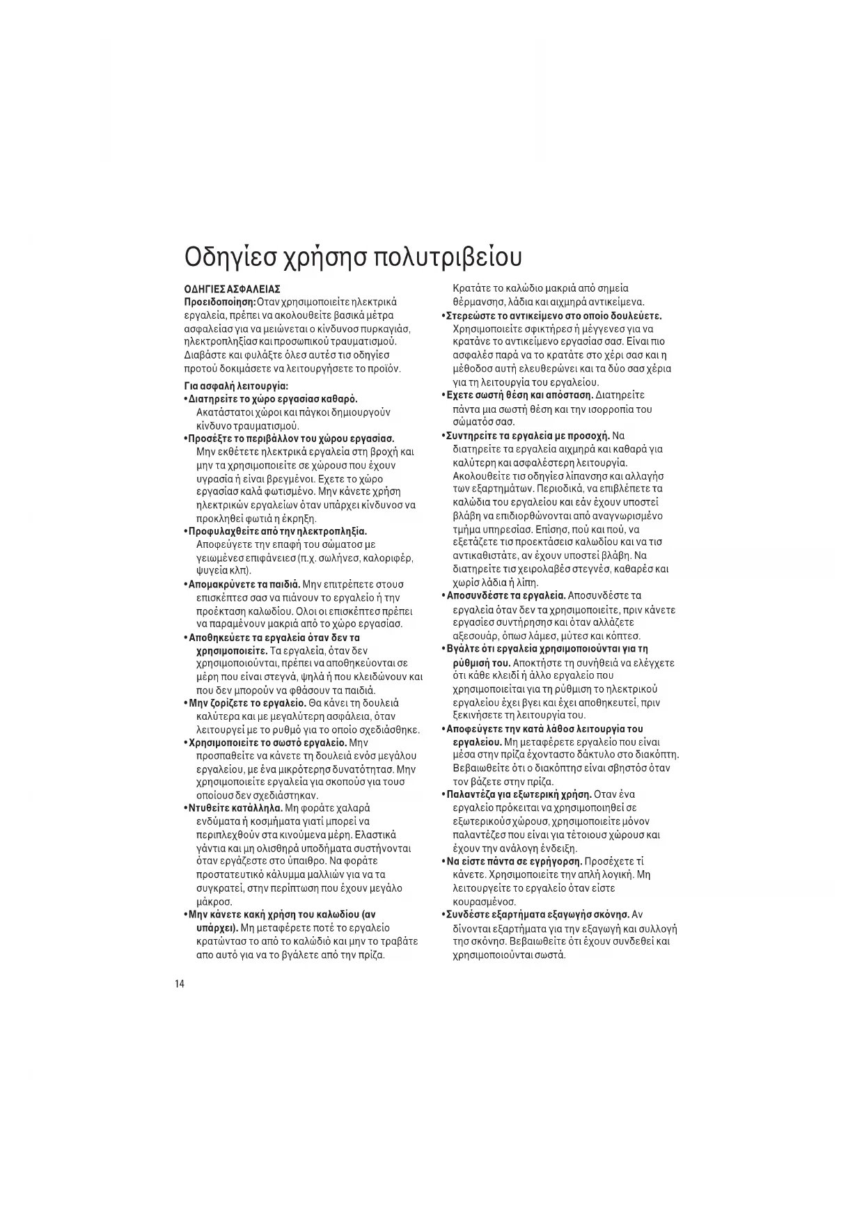 - Xρησιµοποιείτε το σωστ εργαλείο. Mην προσπαθείτε να κάνετε τη δουλειά ενσ µεγάλου εργαλείου, µε ένα µικρτερησ δυναττητασ. Mην χρησιµοποιείτε εργαλεία για σκοπούσ για τουσ οποίουσ δεν σχεδιάστηκαν.