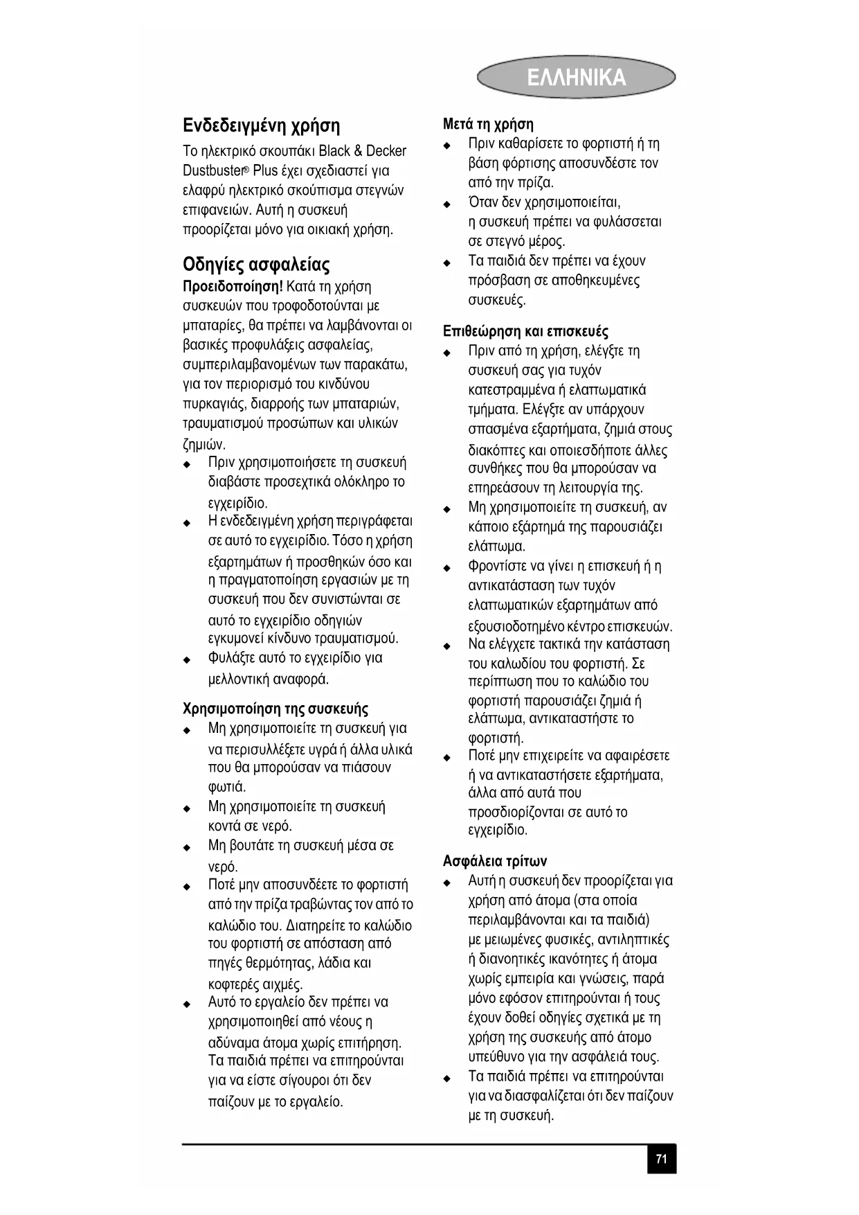 Ενδεδειγμένη χρήση Το ηλεκτρικό σκουπάκι Black & Decker Dustbuster