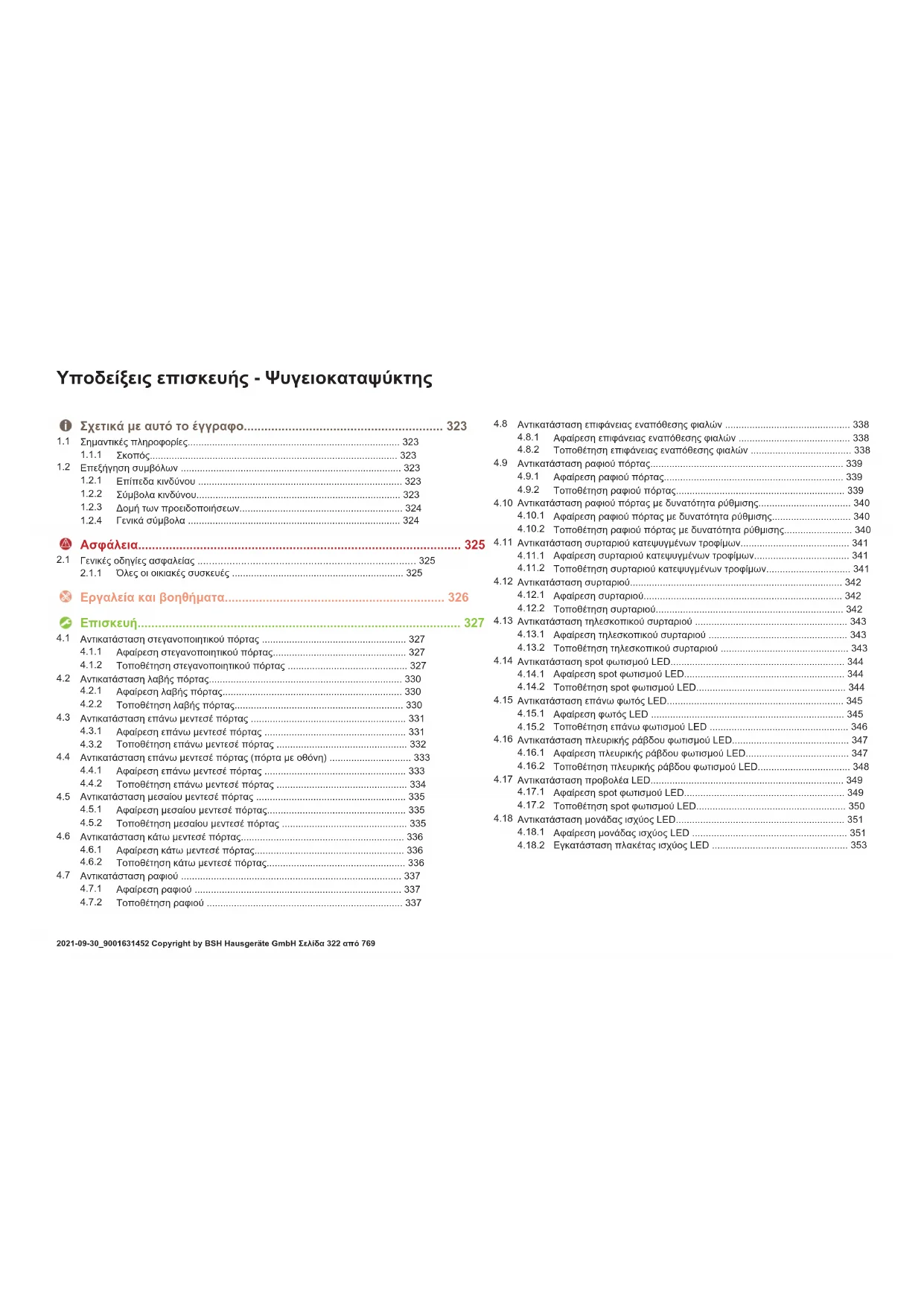 Εγκατάσταση πλακέτας ισχύος LED ..................................................353 Yποδείξεις επισκευής-Ψυγειοκαταψύκτης 2021-09-30_9001631452 Copyright by BSH Hausgeräte GmbH Σελίδα322από769Σχετικά με αυτό το έγγραφο