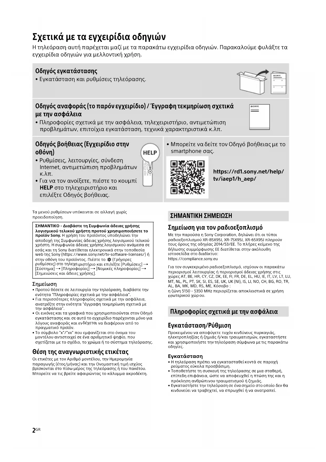 Κατεβάστε τις οδηγίες για το Τηλεόραση σε μορφή PDF δωρεάν! Βρείτε το εγχειρίδιό σας Bravia XR65X95J - SONY και πάρτε ξανά την ηλεκτρονική σας συσκευή στα χέρια σας. Σε αυτή τη σελίδα δημοσιεύονται όλα τα έγγραφα που απαιτούνται για τη χρήση της συσκευής σας. Bravia XR65X95J της μάρκας SONY.