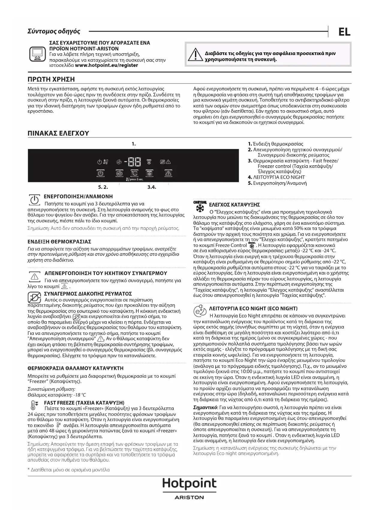 - Disponível apenas em determinados modelosEL Σύντομος οδηγός ΣΑΣ ΕΥΧΑΡΙΣΤΟΥΜΕ ΠΟΥ ΑΓΟΡΑΣΑΤΕ ΕΝΑ ΠΡΟΪΟΝ HOTPOINT-ARISTON Για να λάβετε πλήρη τεχνική υποστήριξη, παρακαλούμε να καταχωρίσετε τη συσκευή σας στην ιστοσελίδα www . hotpoint . eu/ register ιαβάστε τι οδηγίε για την ασφάλεια προσεκτικά πριν χρησιοποιήσετε τη συσκευή.