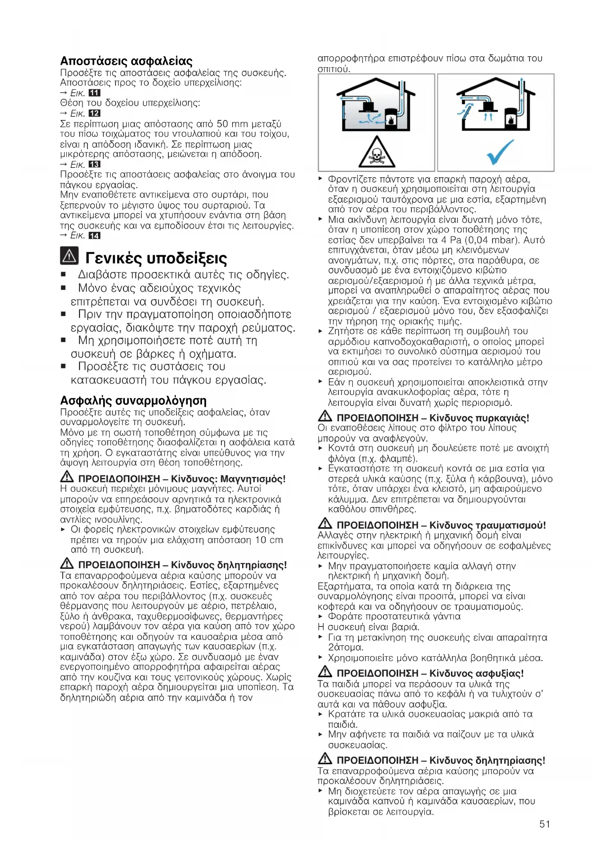 Φροντίζετε πάντοτε για επαρκή παροχή αέρα, όταν η συσκευή χρησιμοποιείται στη λειτουργία εξαερισμού ταυτόχρονα με μια εστία, εξαρτημένη από τον αέρα του περιβάλλοντος.