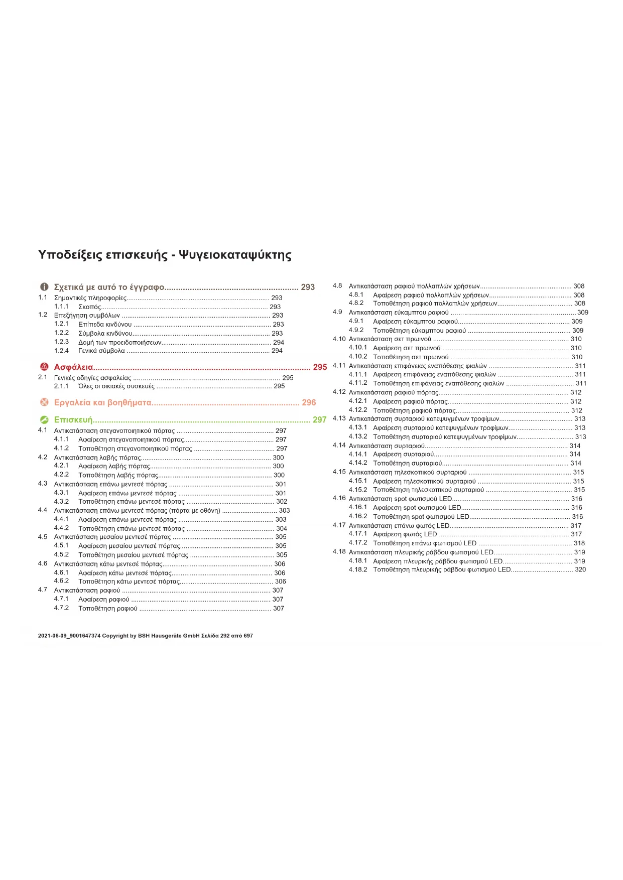 Τοποθέτηση πλευρικής ράβδου φωτισμού LED..................................320 Yποδείξεις επισκευής-Ψυγειοκαταψύκτης 2021-06-09_9001647374 Copyright by BSH Hausgeräte GmbH Σελίδα292από697Σχετικά με αυτό το έγγραφο