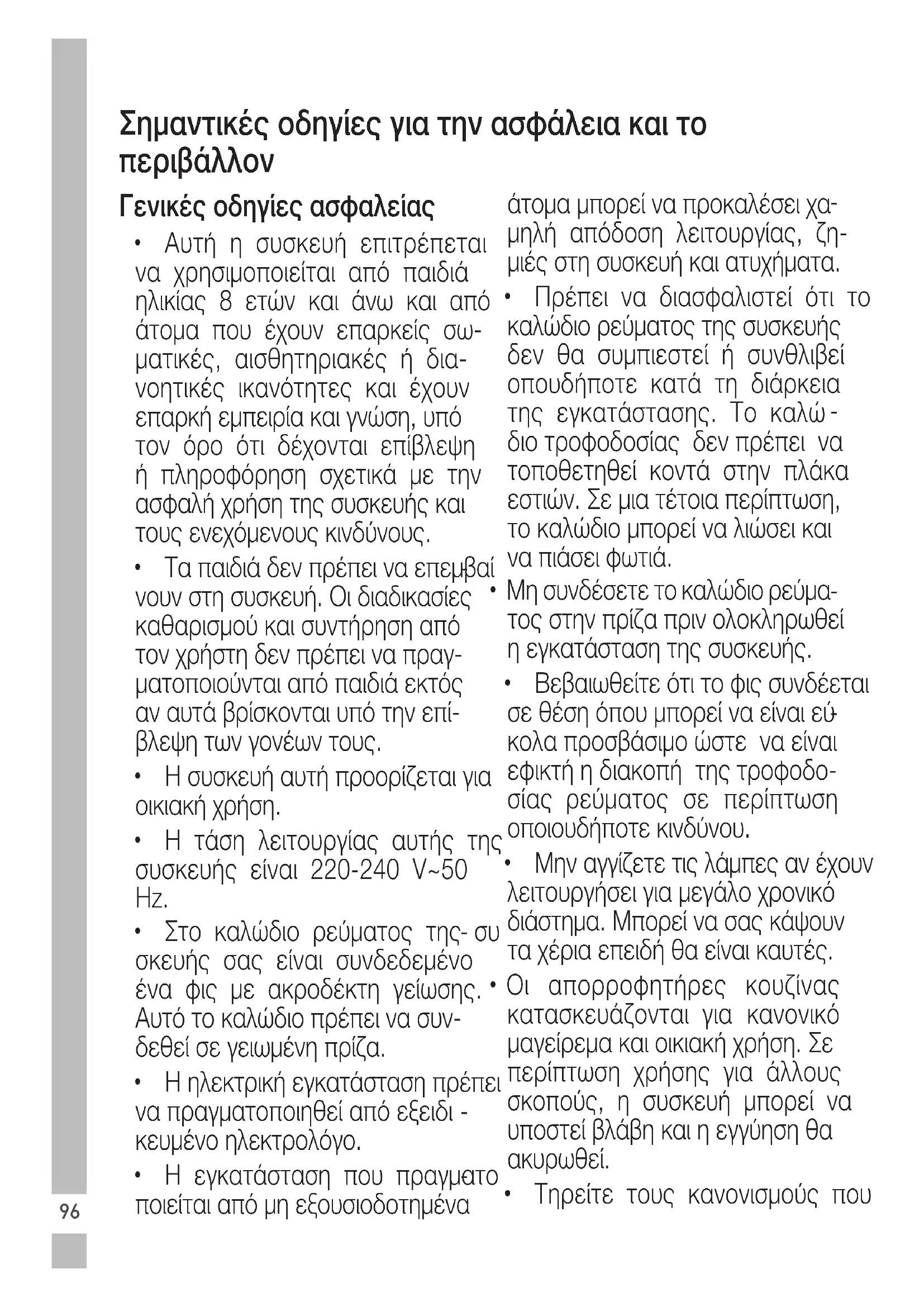 γούν με άλλο τύπο ενέργειας εκτός από ηλεκτρισμό. Σημαντικές οδηγίες για την ασφάλεια και το περιβάλλον98