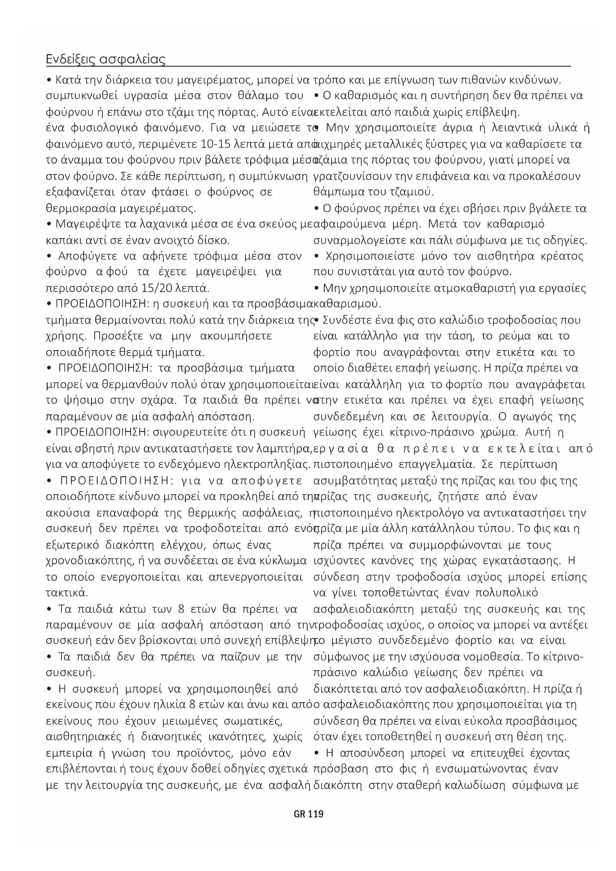 - ΠΡΟΕΙΔΟΠΟΙΗΣΗ: τα προσβάσιμα τμήματα μπορεί να θερμανθούν πολύ όταν χρησιμοποιείται το ψήσιμο στην σχάρα. Τα παιδιά θα πρέπει να παραμένουν σε μία ασφαλή απόσταση.