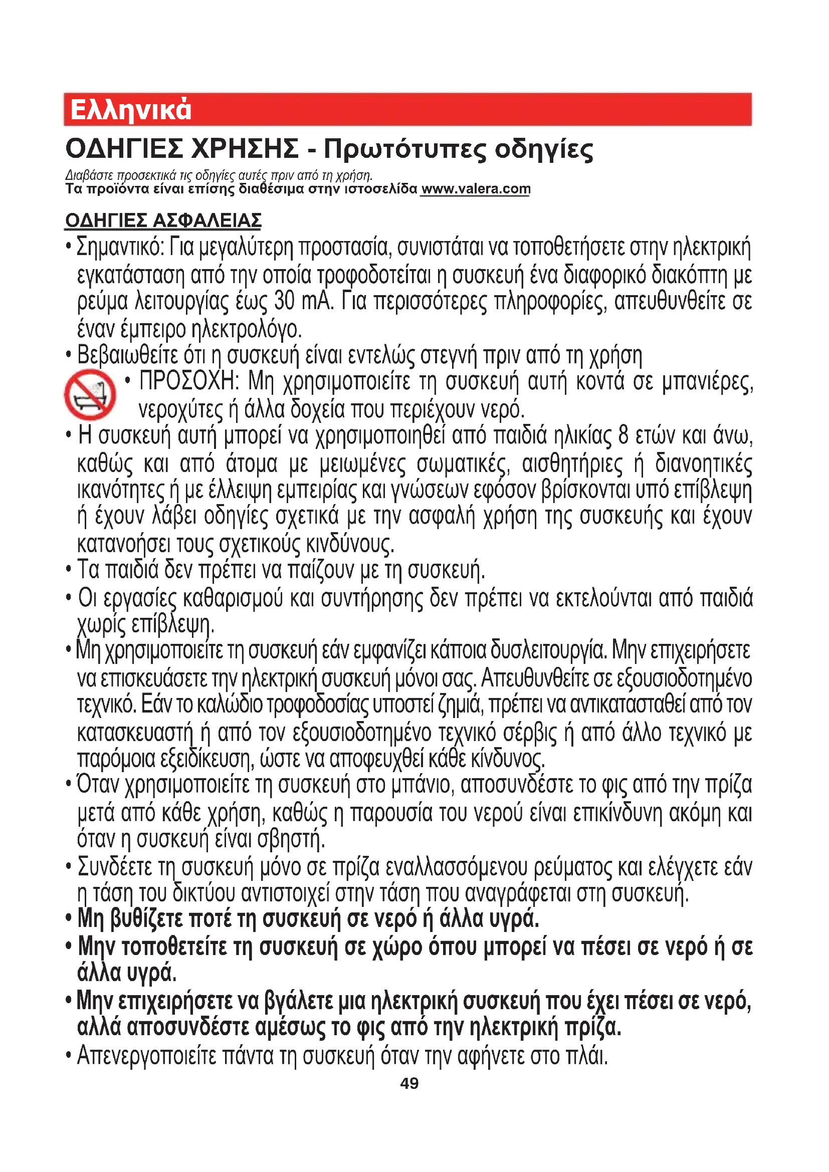 ΟΔΗΓΙΕΣ ΧΡΗΣΗΣ - Πρωτότυπες οδηγίες Διαβάστε προσεκτικά τις οδηγίες αυτές πριν από τη χρήση. Τα προϊόντα είναι επίσης διαθέσιμα στην ιστοσελίδα www.valera.com ΟΔΗΓΙΕΣ ΑΣΦΑΛΕΙΑΣ