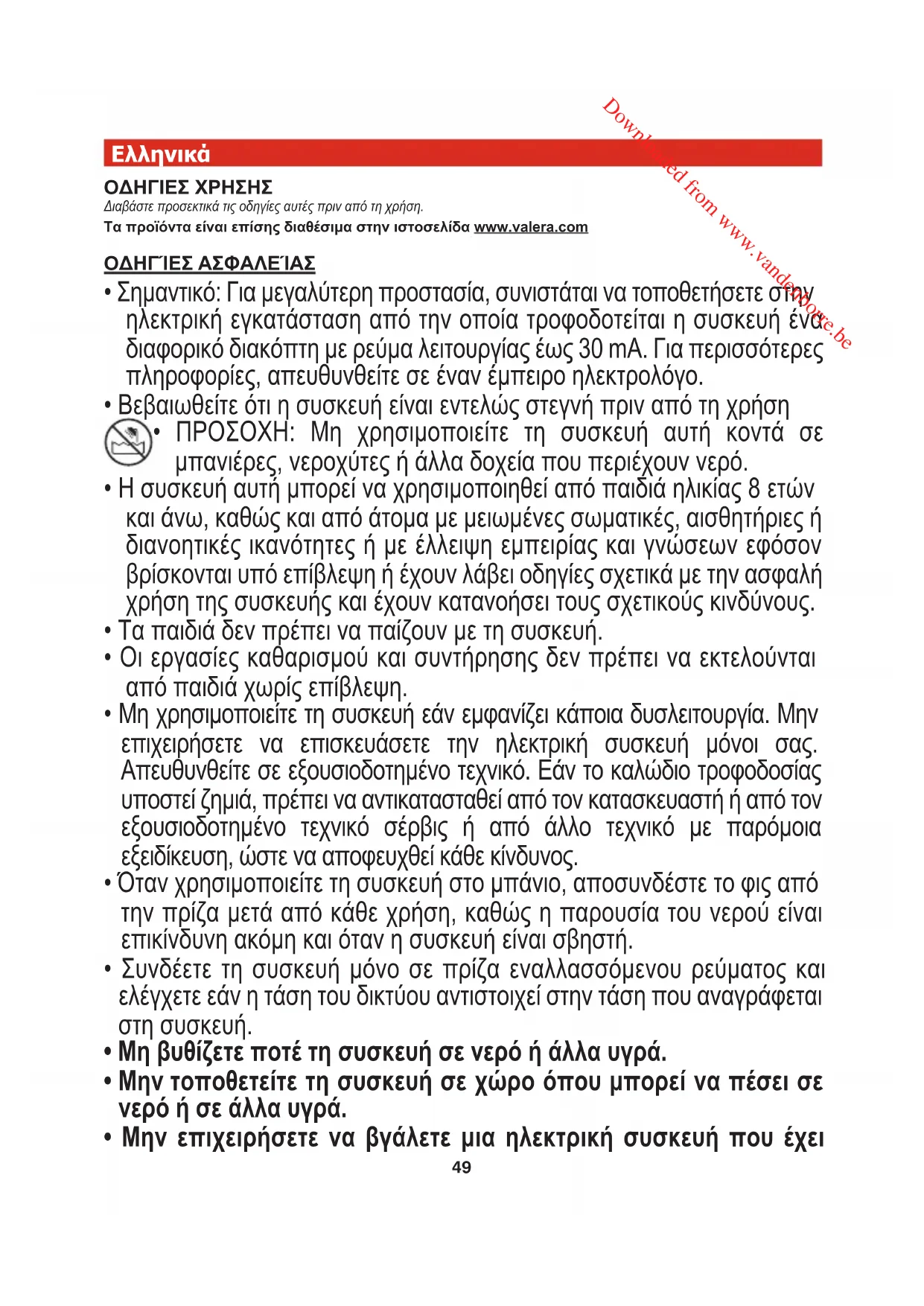 ΟΔΗΓΙΕΣ ΧΡΗΣΗΣ Διαβάστε προσεκτικά τις οδηγίες αυτές πριν από τη χρήση.Τα προϊόντα είναι επίσης διαθέσιμα στην ιστοσελίδα www.valera.com ΟΔΗΓΊΕΣ ΑΣΦΑΛΕΊΑΣ