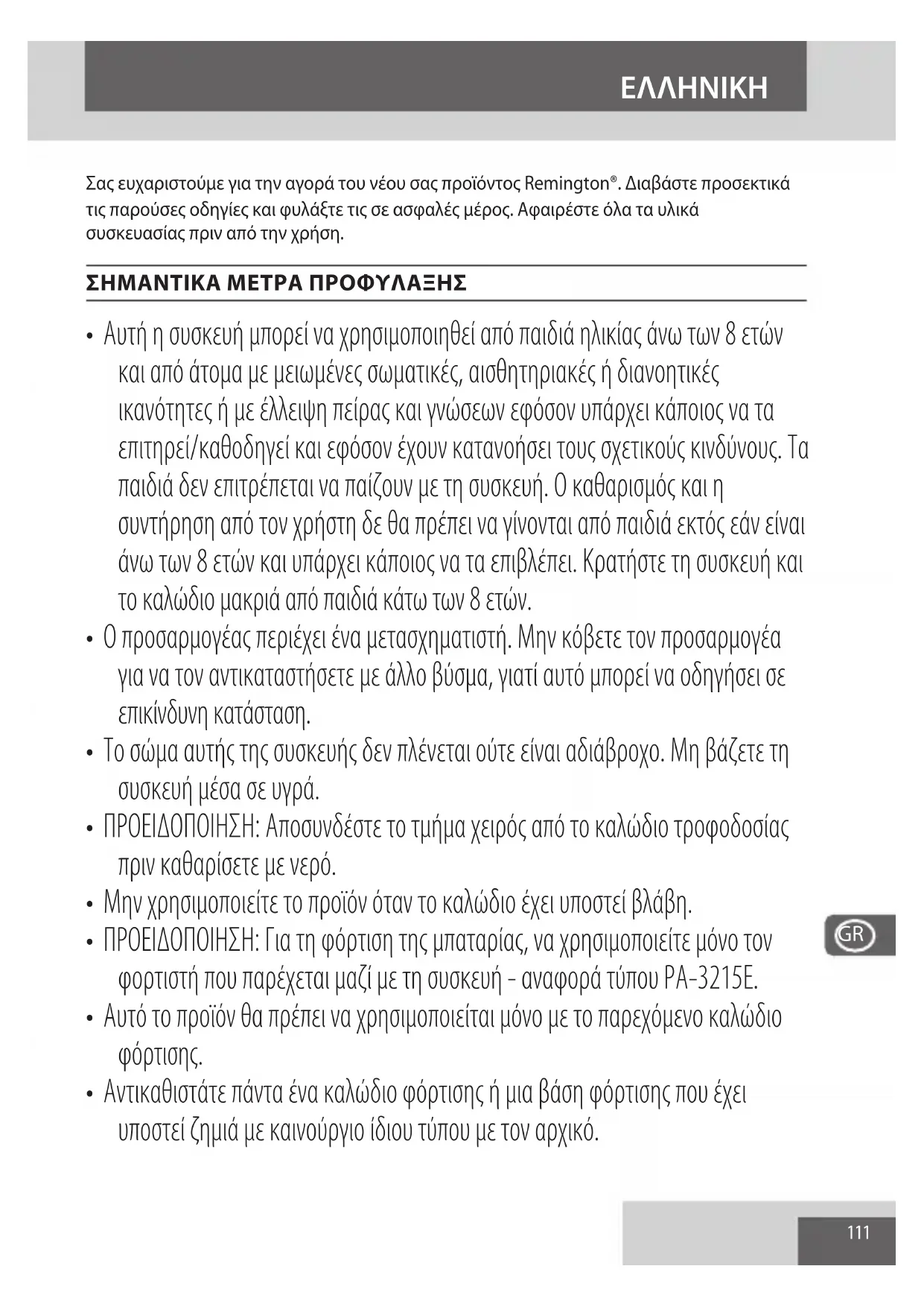 - Αυτή η συσκευή μπορεί να χρησιμοποιηθεί από παιδιά ηλικίας άνω των 8 ετών και από άτομα με μειωμένες σωματικές, αισθητηριακές ή διανοητικές ικανότητες ή με έλλειψη πείρας και γνώσεων εφόσον υπάρχει κάποιος να τα επιτηρεί/καθοδηγεί και εφόσον έχουν κατανοήσει τους σχετικούς κινδύνους. Τα παιδιά δεν επιτρέπεται να παίζουν με τη συσκευή. Ο καθαρισμός και η συντήρηση από τον χρήστη δε θα πρέπει να γίνονται από παιδιά εκτός εάν είναι άνω των 8 ετών και υπάρχει κάποιος να τα επιβλέπει. Κρατήστε τη συσκευή και το καλώδιο μακριά από παιδιά κάτω των 8 ετών.