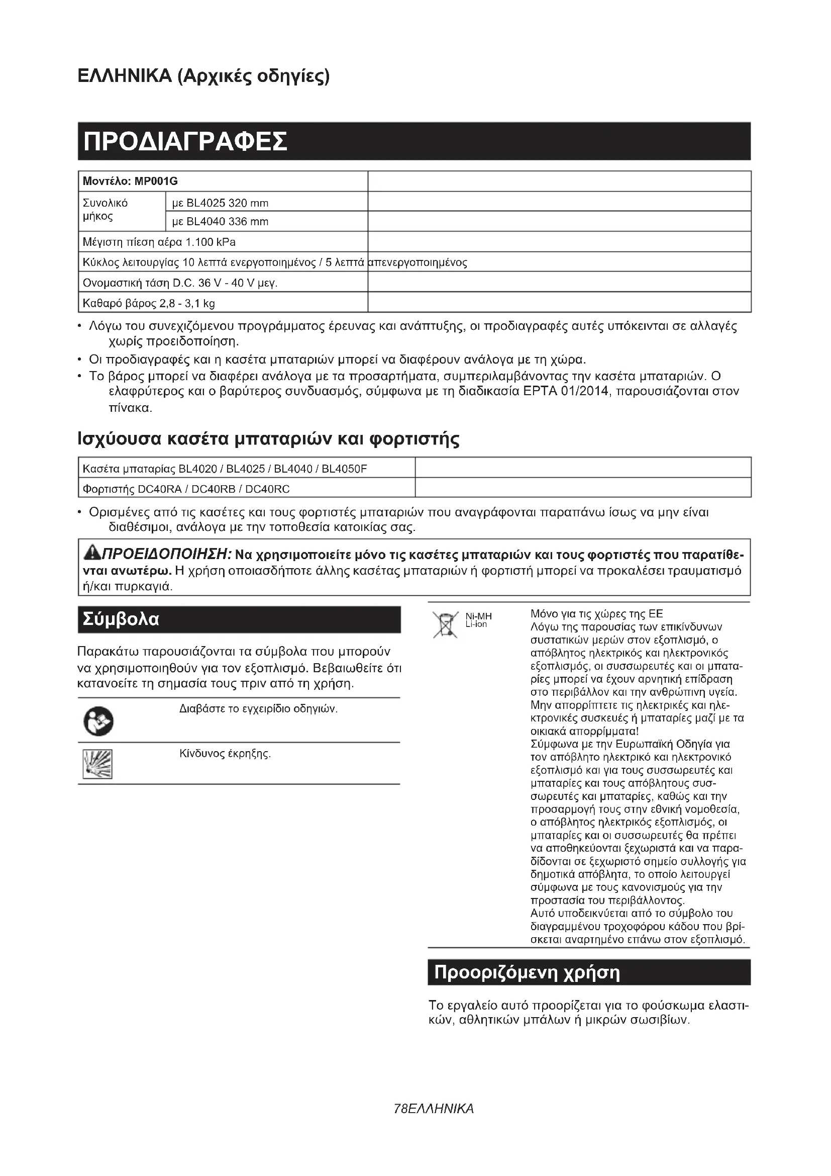 ΕΓΧΕΙΡΊΔΙΟ ΧΡΉΣΗΣ MP001G MAKITA