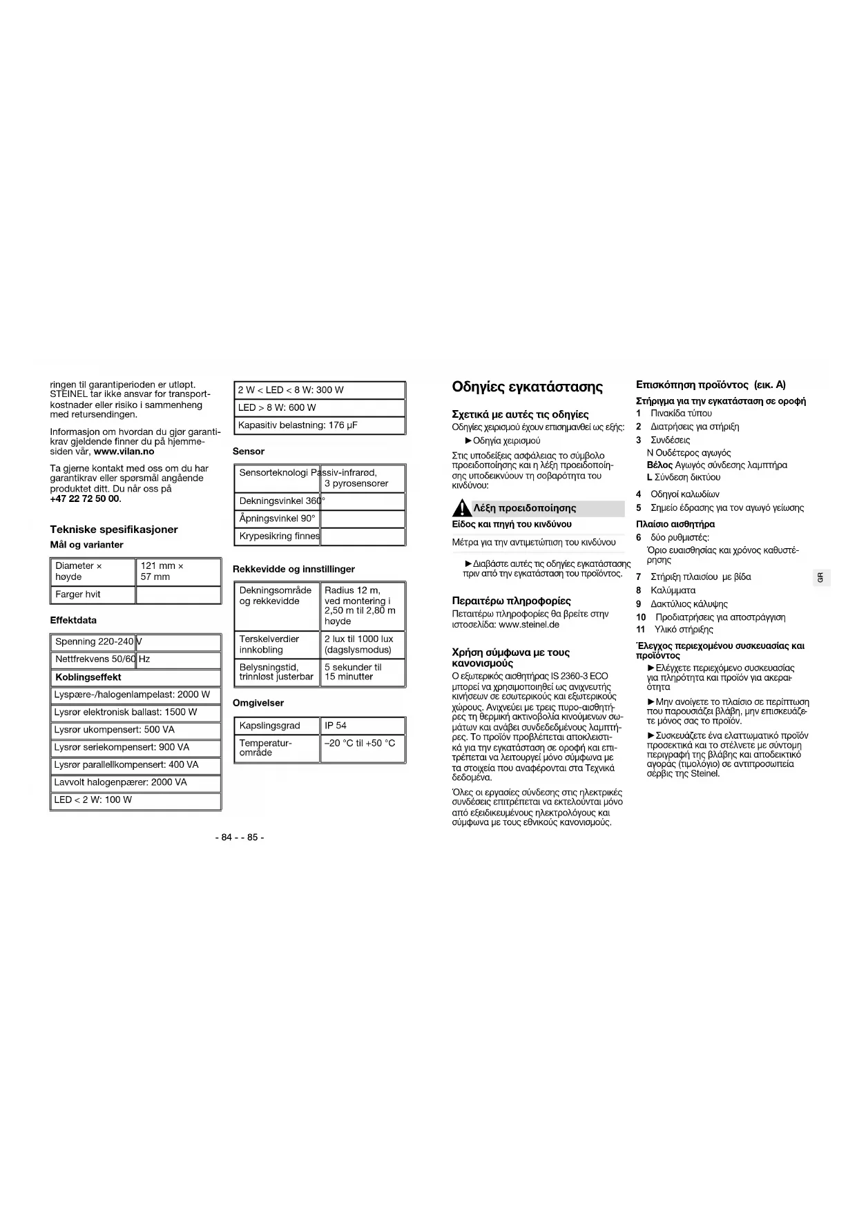 ση εγγύησης. Σας παρέχουμε 5έτη εγγύ- ηση για την άψογη κατασκευή και την κα- νονική λειτουργία του προϊόντος STEINEL Professional-Sensorik. Παρέχουμε την εγ
