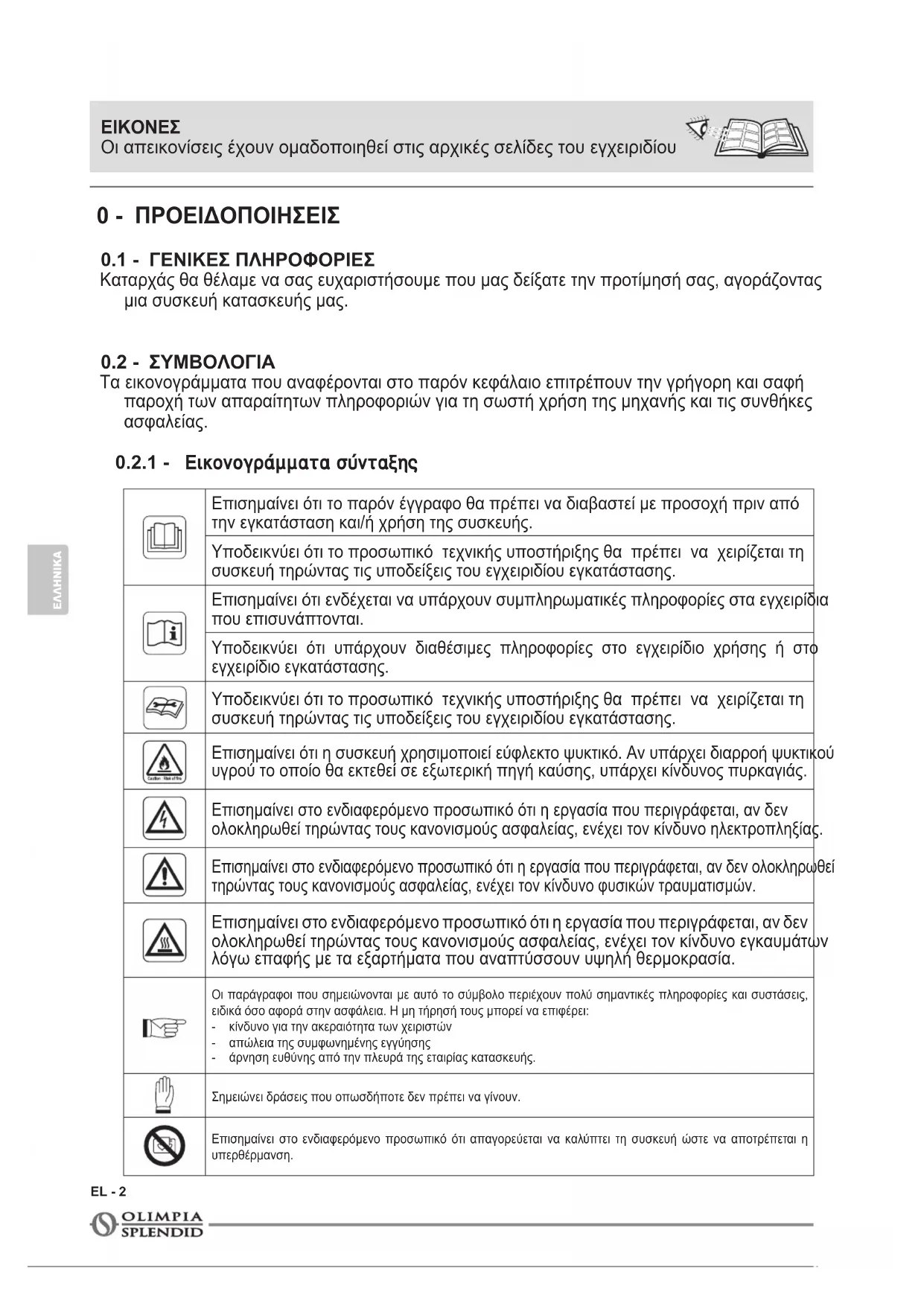 Τα εικονογράμματα που αναφέρονται στο παρόν κεφάλαιο επιτρέπουν την γρήγορη και σαφή παροχή των απαραίτητων πληροφοριών για τη σωστή χρήση της μηχανής και τις συνθήκες