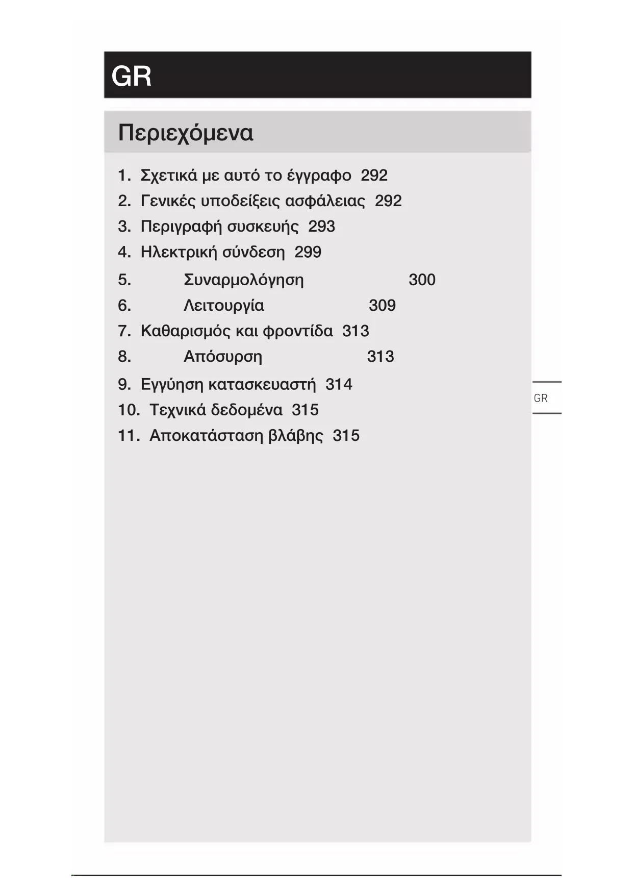 Η πηγή φωτός αυτού του λαμπτήρα μπορεί να αντικατα- σταθεί.– 300 – Περιεχόμενα