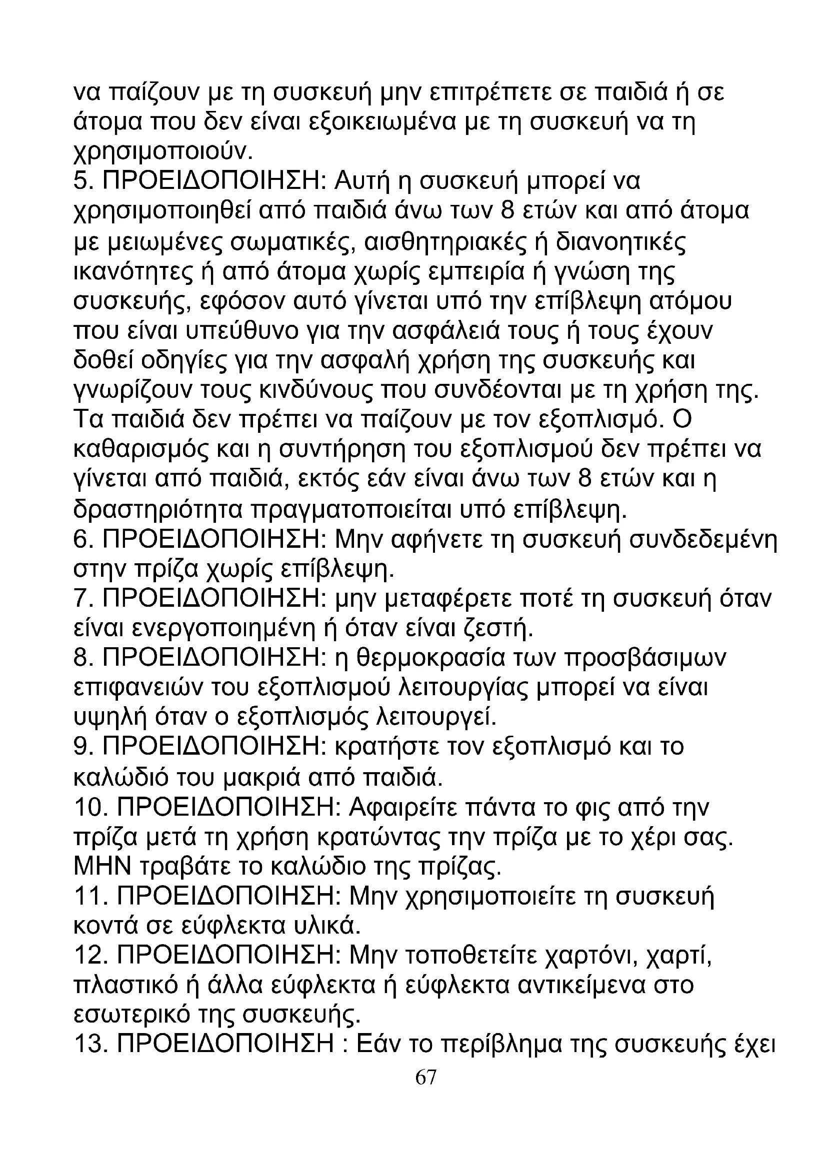13. ΠΡΟΕΙΔΟΠΟΙΗΣΗ : Εάν το περίβλημα της συσκευής έχει68